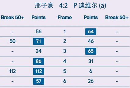 邢子豪 4:2 P 迪维尔 (a) 详情