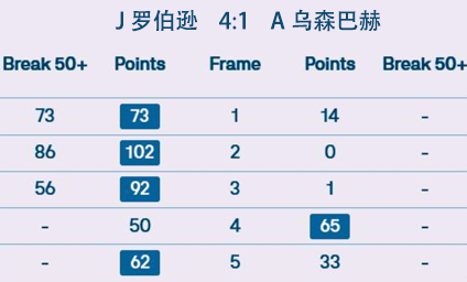 J 罗伯逊 4:1 A 乌森巴赫 详情