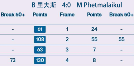 B 里夫斯 4:0 M Phetmalaikul 详情