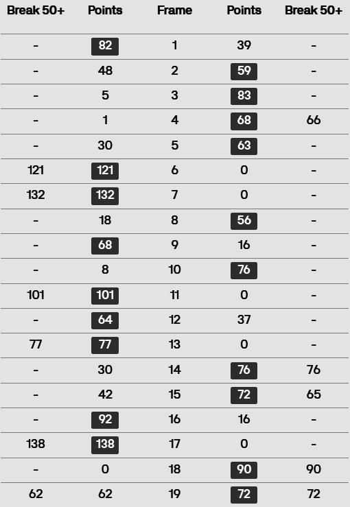 斯佳辉 [20] 6-4 R 奥沙利文 [5]