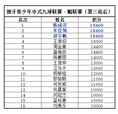 独牙|青少年九球联赛第三站·赛事新闻专题了解积分榜详情,请点击下方链接【积分榜】独牙青少年中式九球联赛(鲲联赛)截至第三站