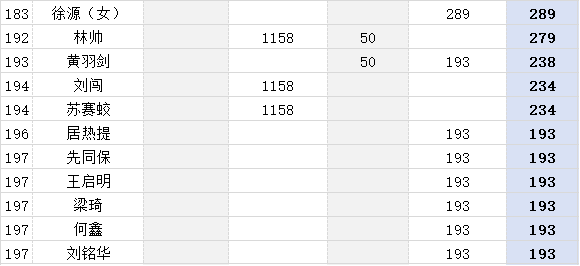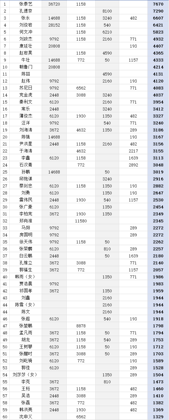 中国台球协会中式台球全国积分排名表(截至6月葫芦岛中国公开赛第二站)