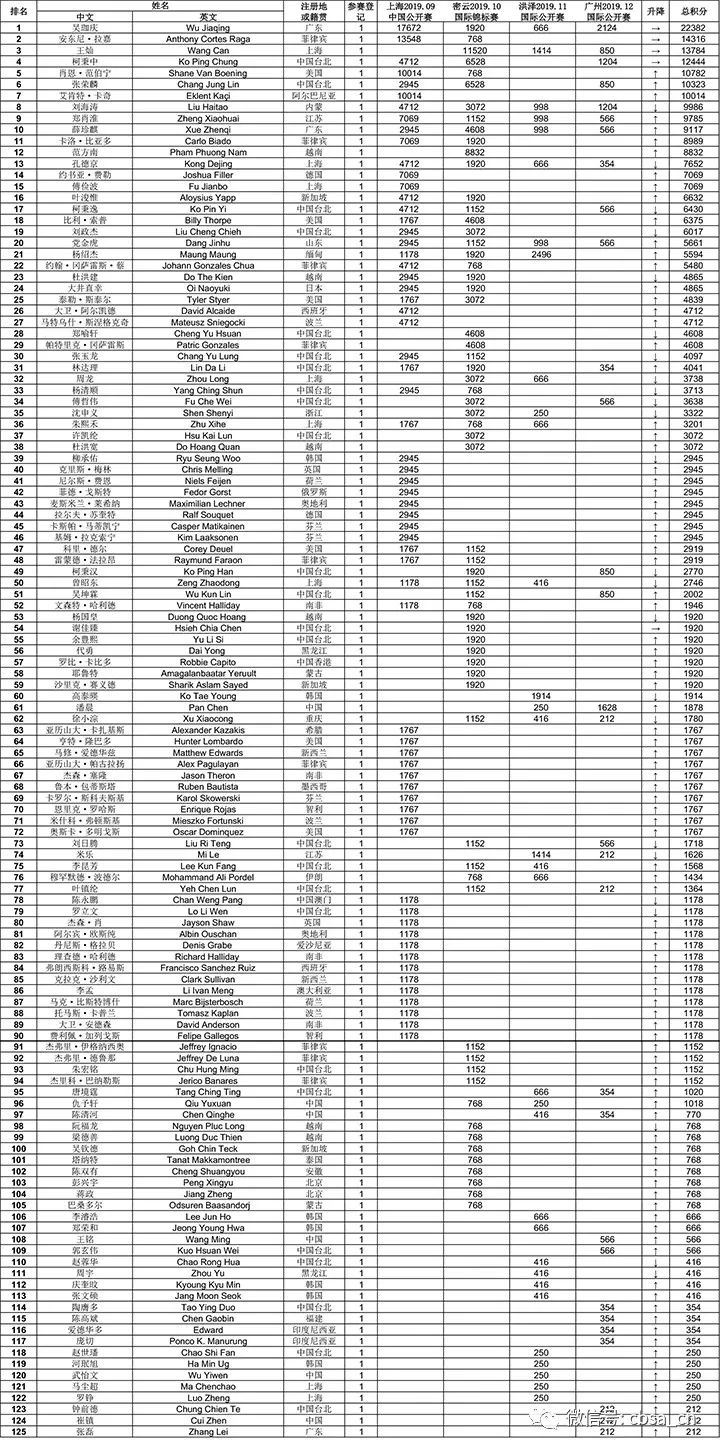 CBSA美式最新排名(截止2019广州国际公开赛)男子排名