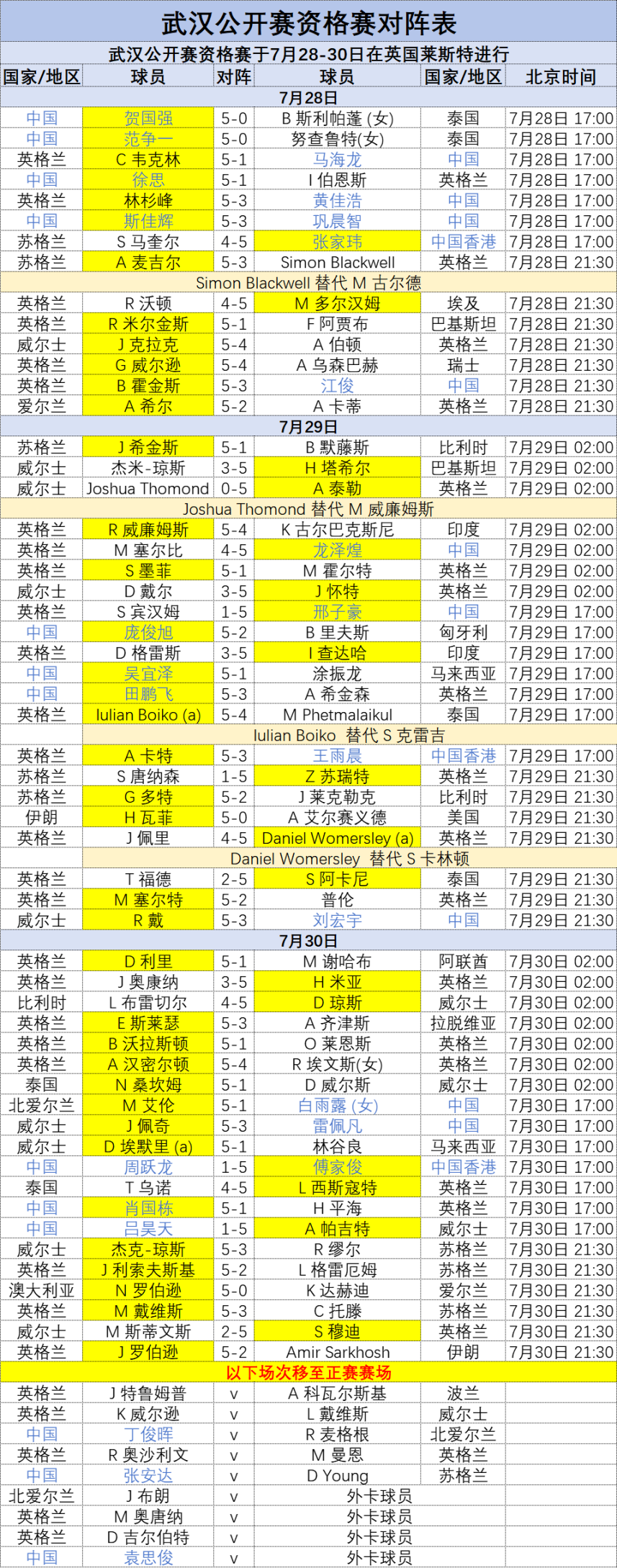 武汉公开赛资格赛·赛果·对阵表·单杆榜·中国军团12人晋级正赛