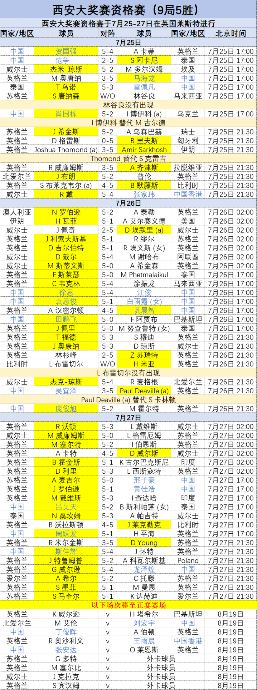 西安大奖赛资格赛·赛果·对阵表·单杆榜·中国军团晋级人数共计11位