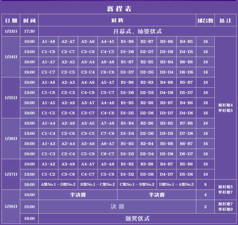 LP|中式台球团体精英赛·时间表