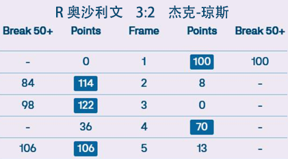 R 奥沙利文 3:2 杰克-琼斯 详情