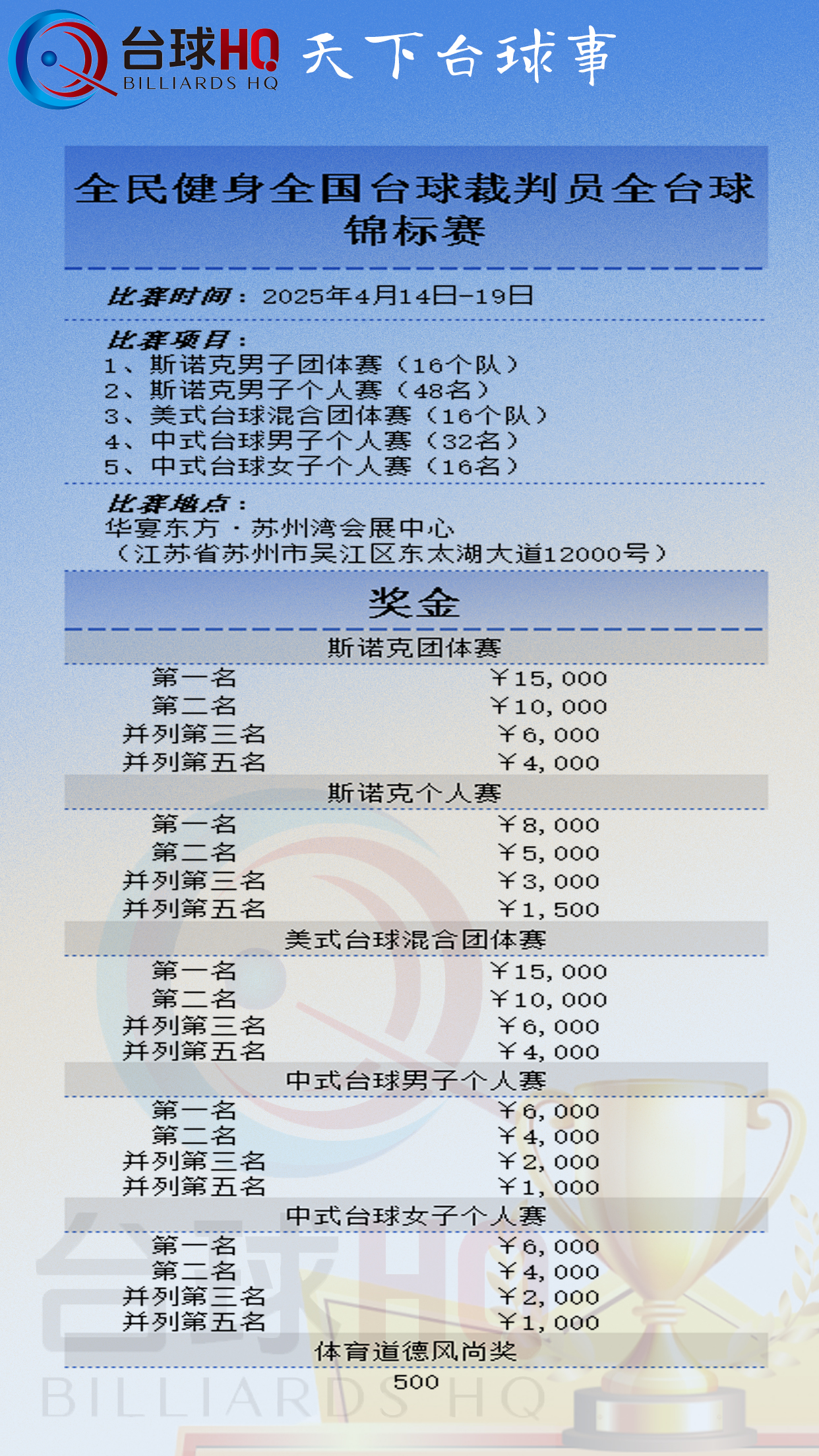 全台球锦标赛·时间·地点