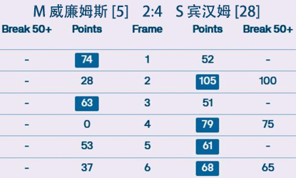 S 宾汉姆 [28] 4:2 吴宜泽 [12] 详情