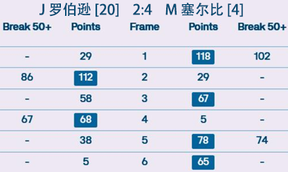 M 塞尔比 [4] 4:2 J 罗伯逊 [20] 详情