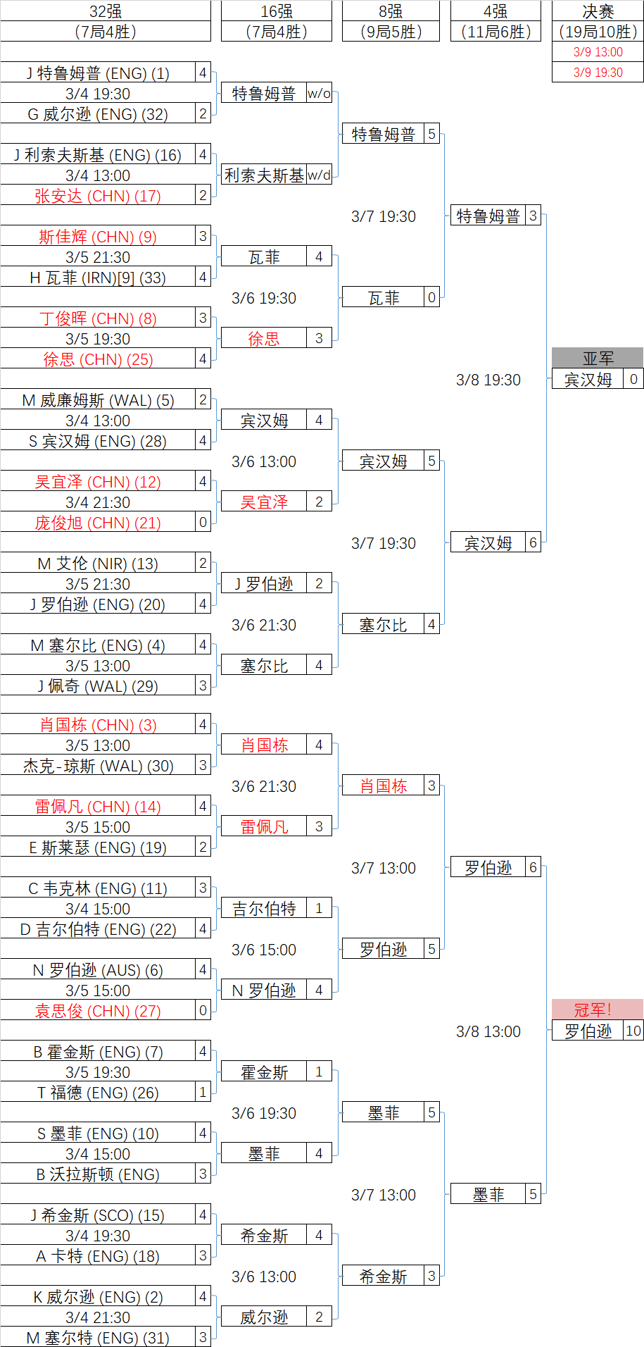 2025世界大奖赛·对阵表·单杆榜