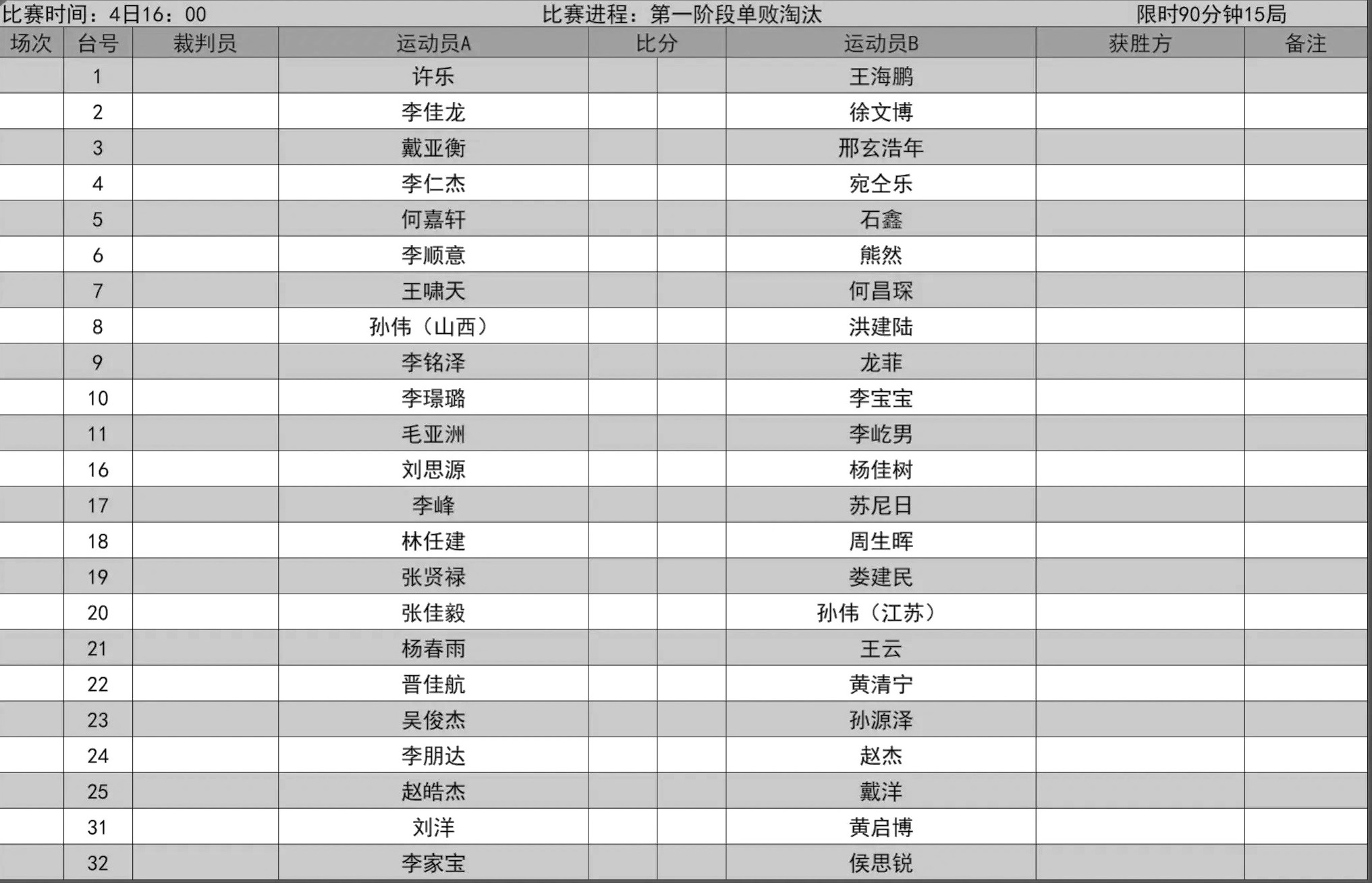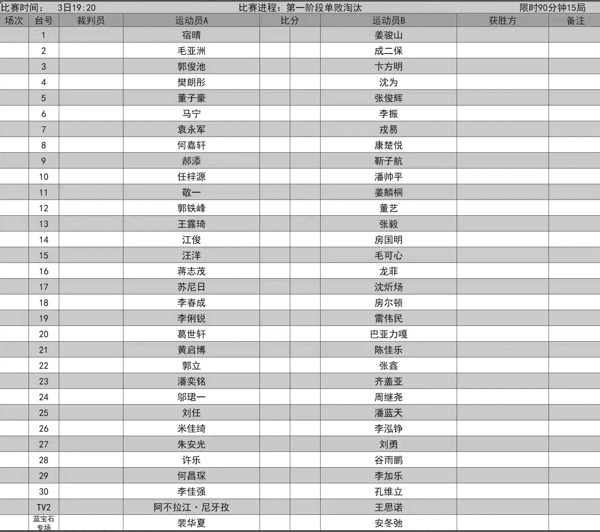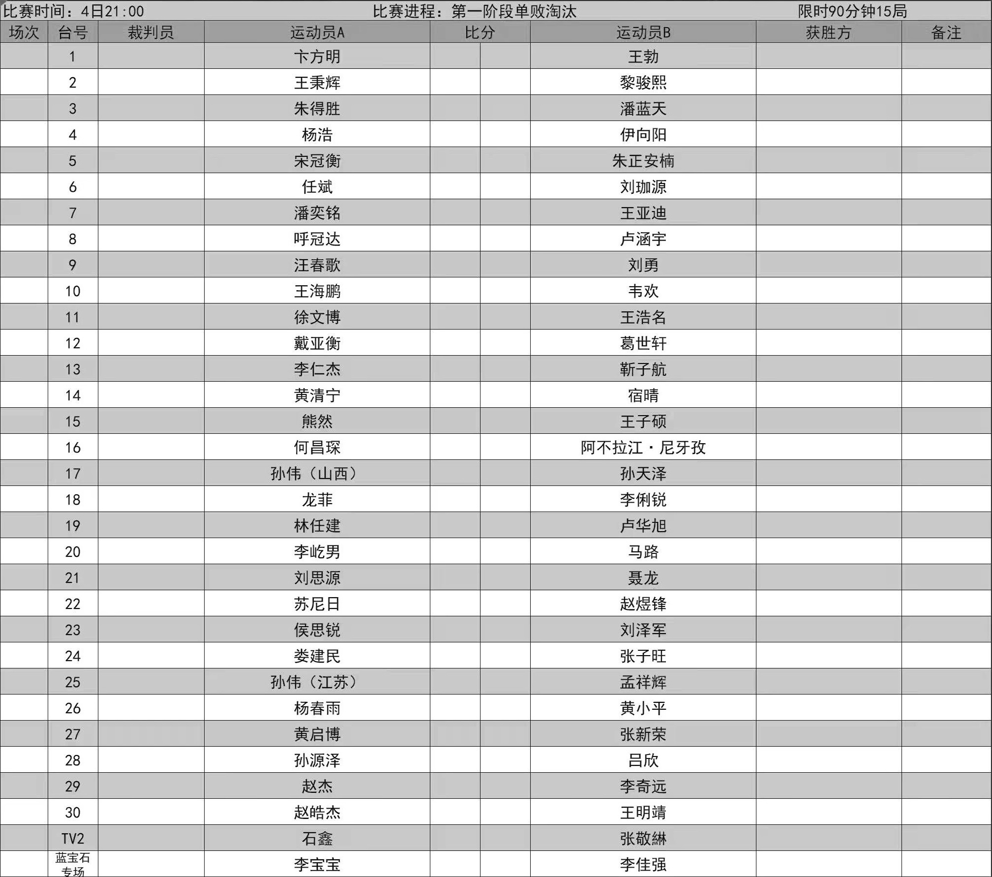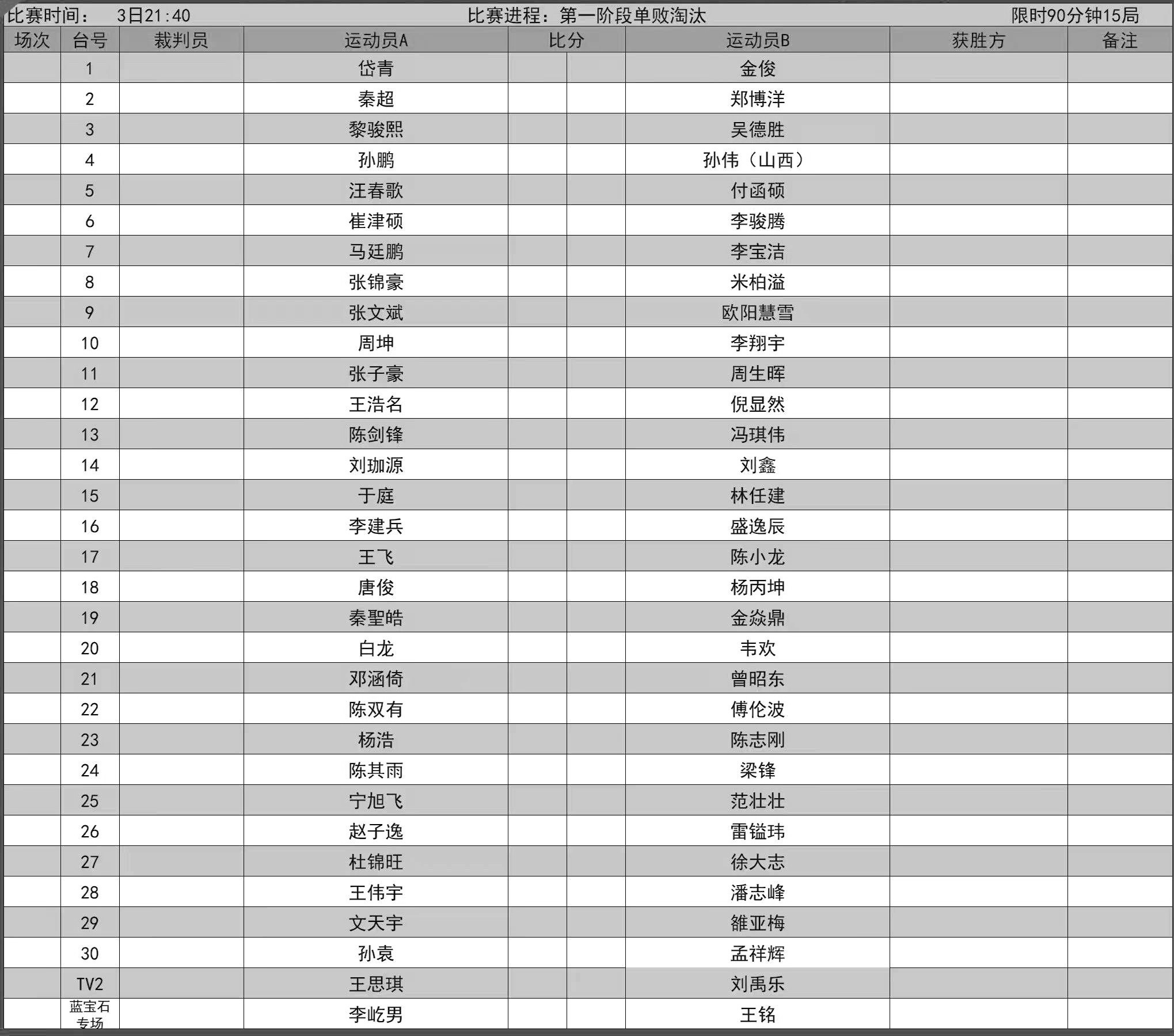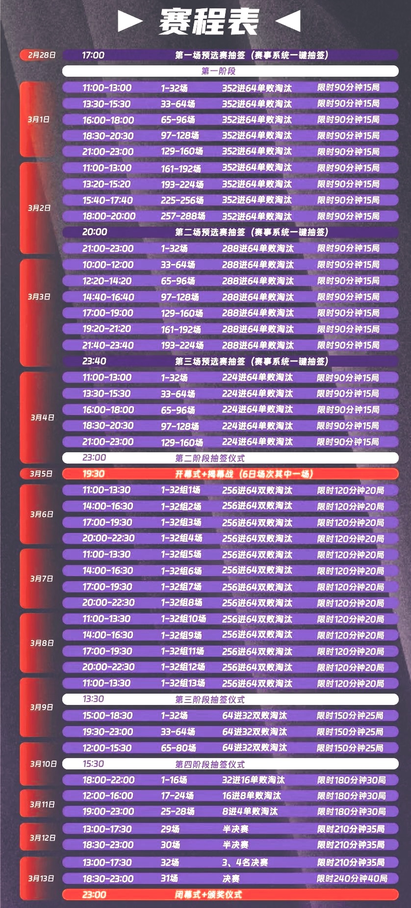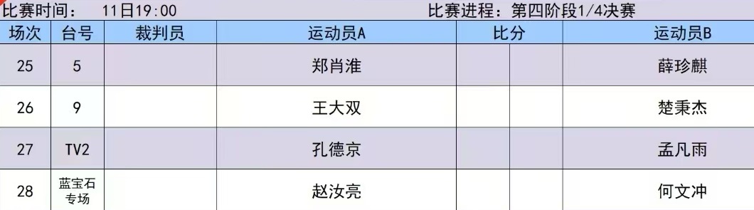 比赛赛程表