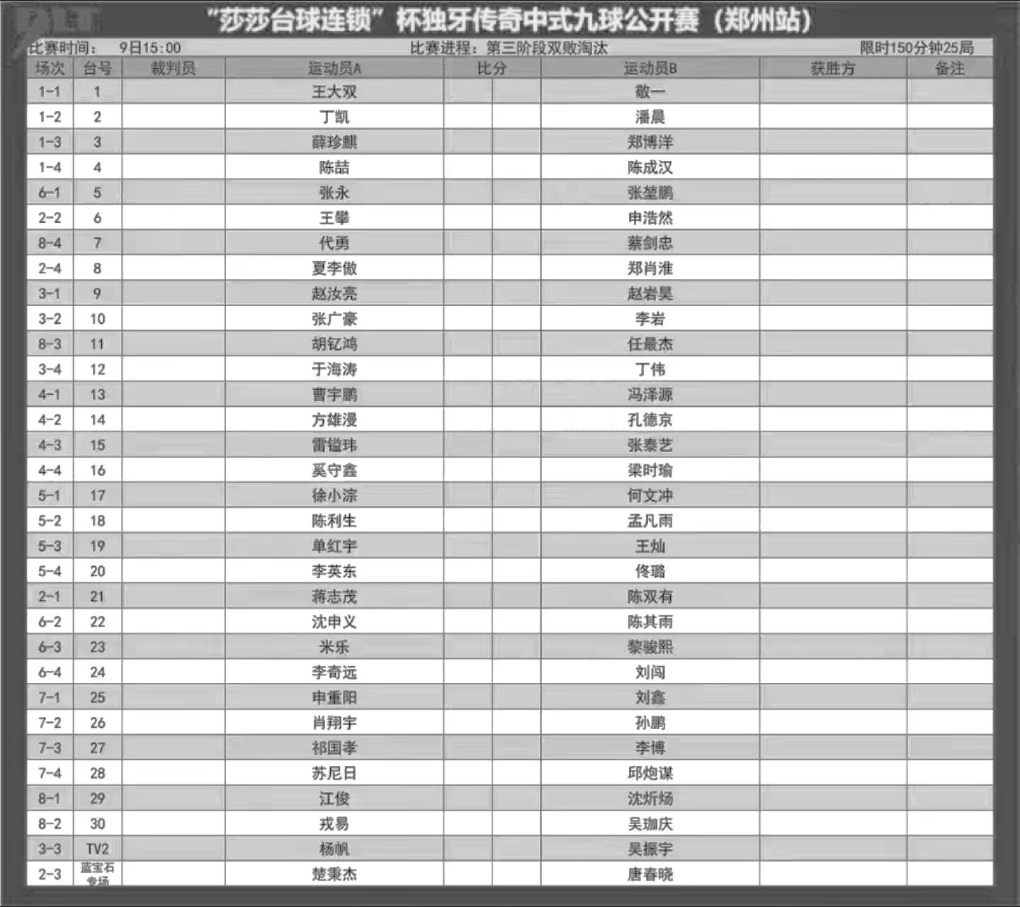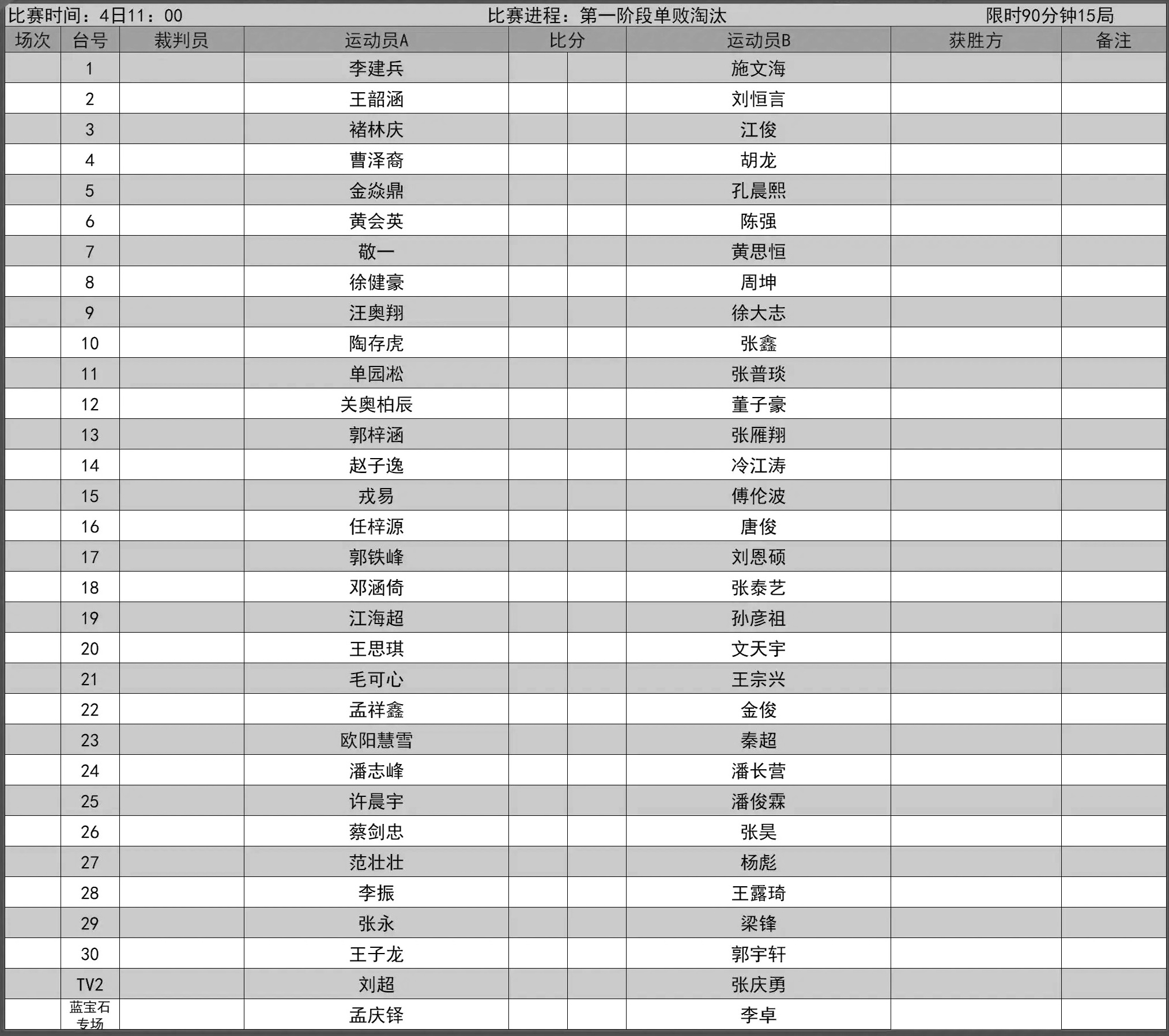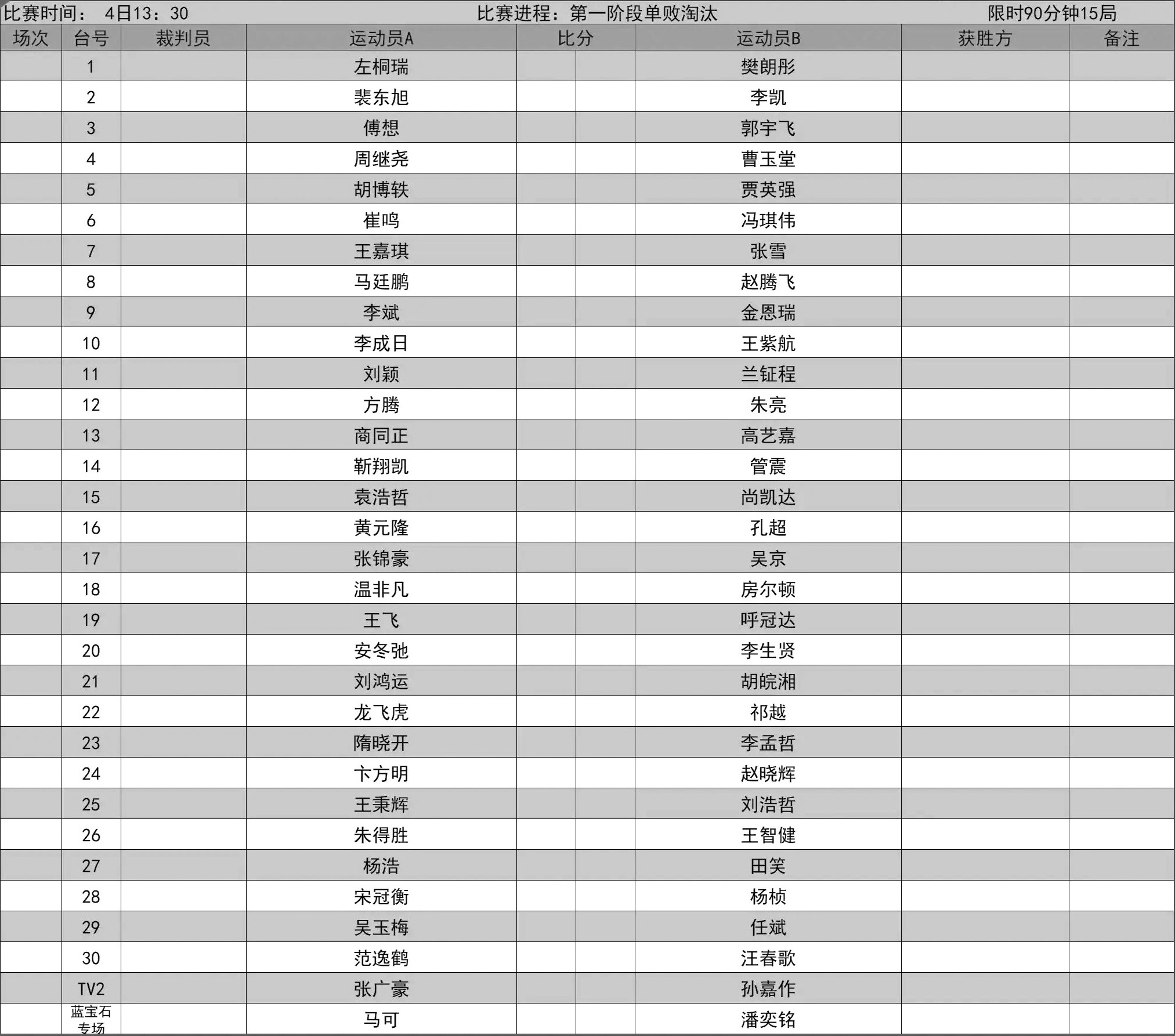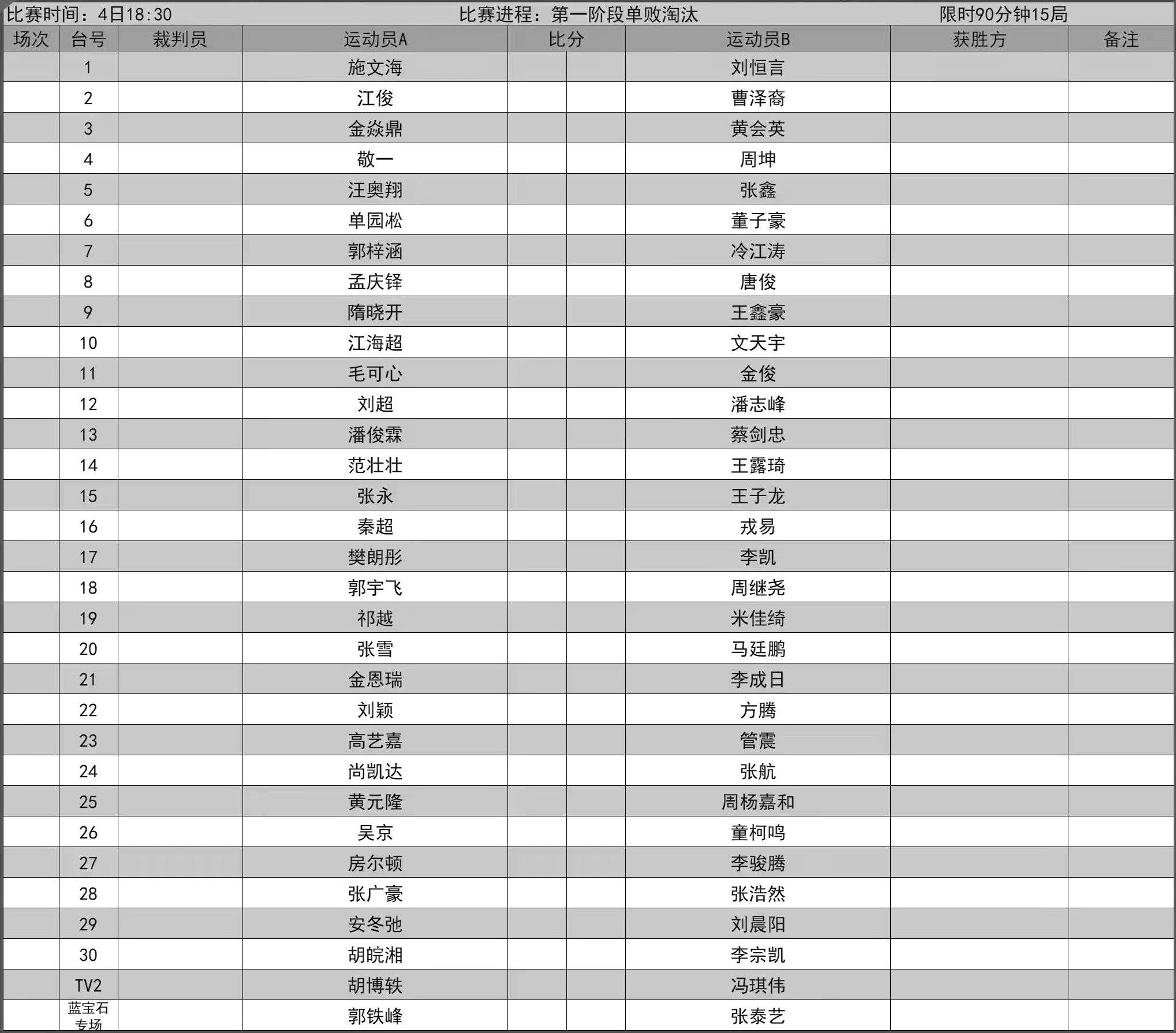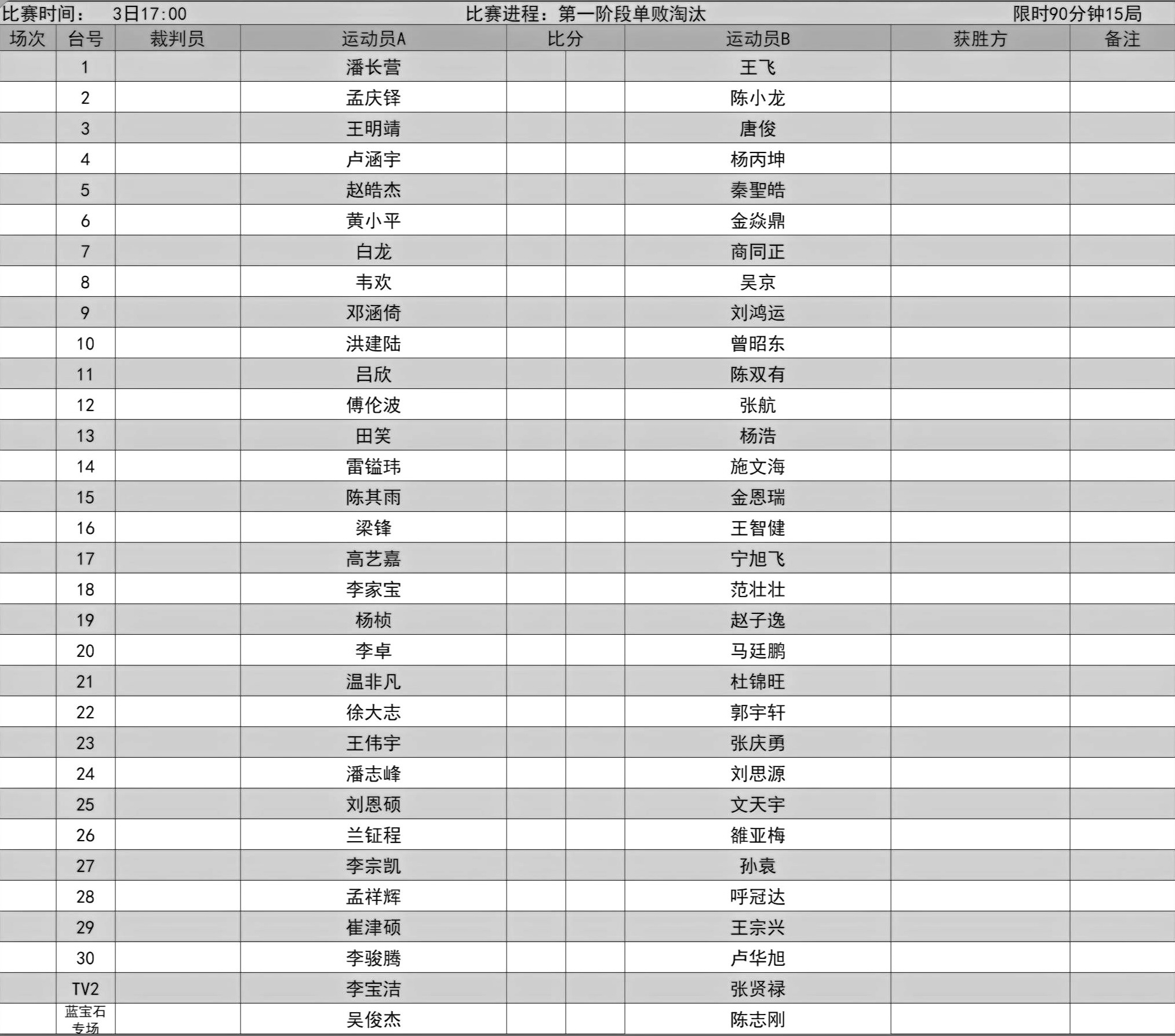 比赛赛程表