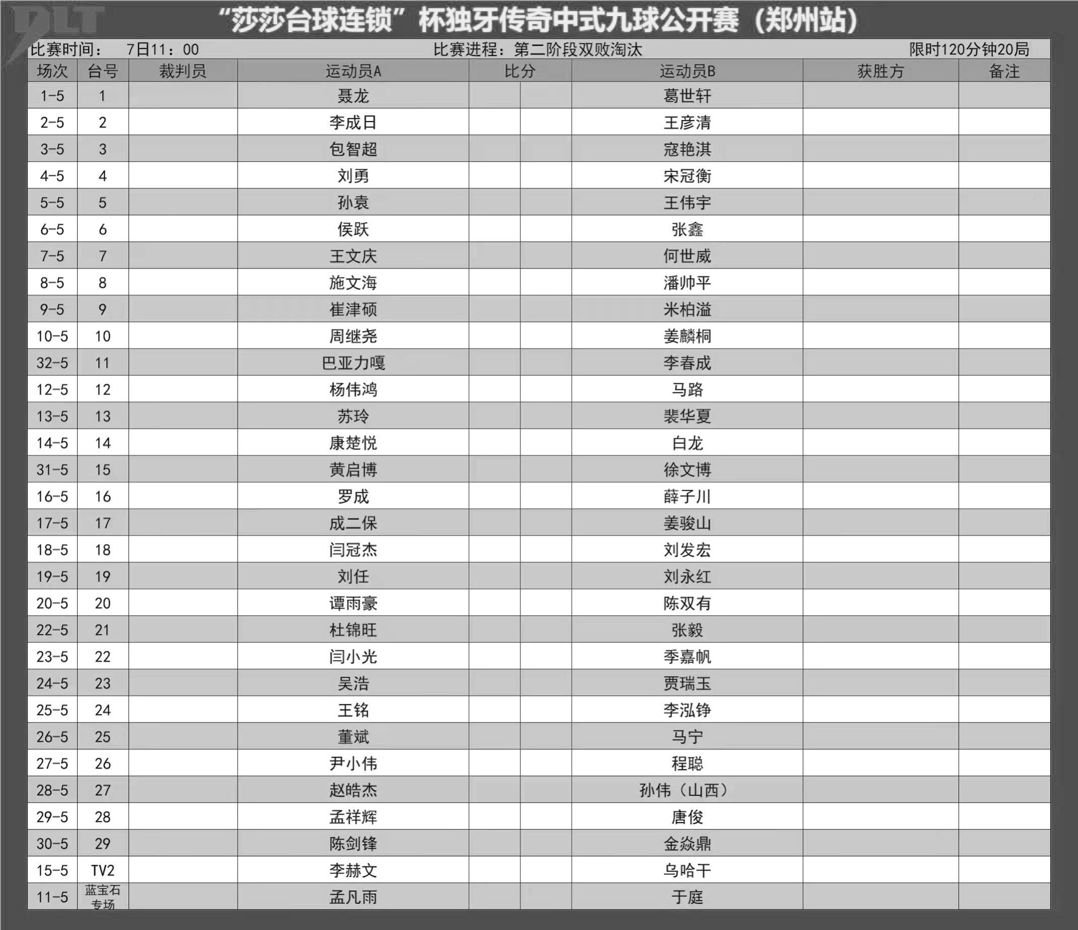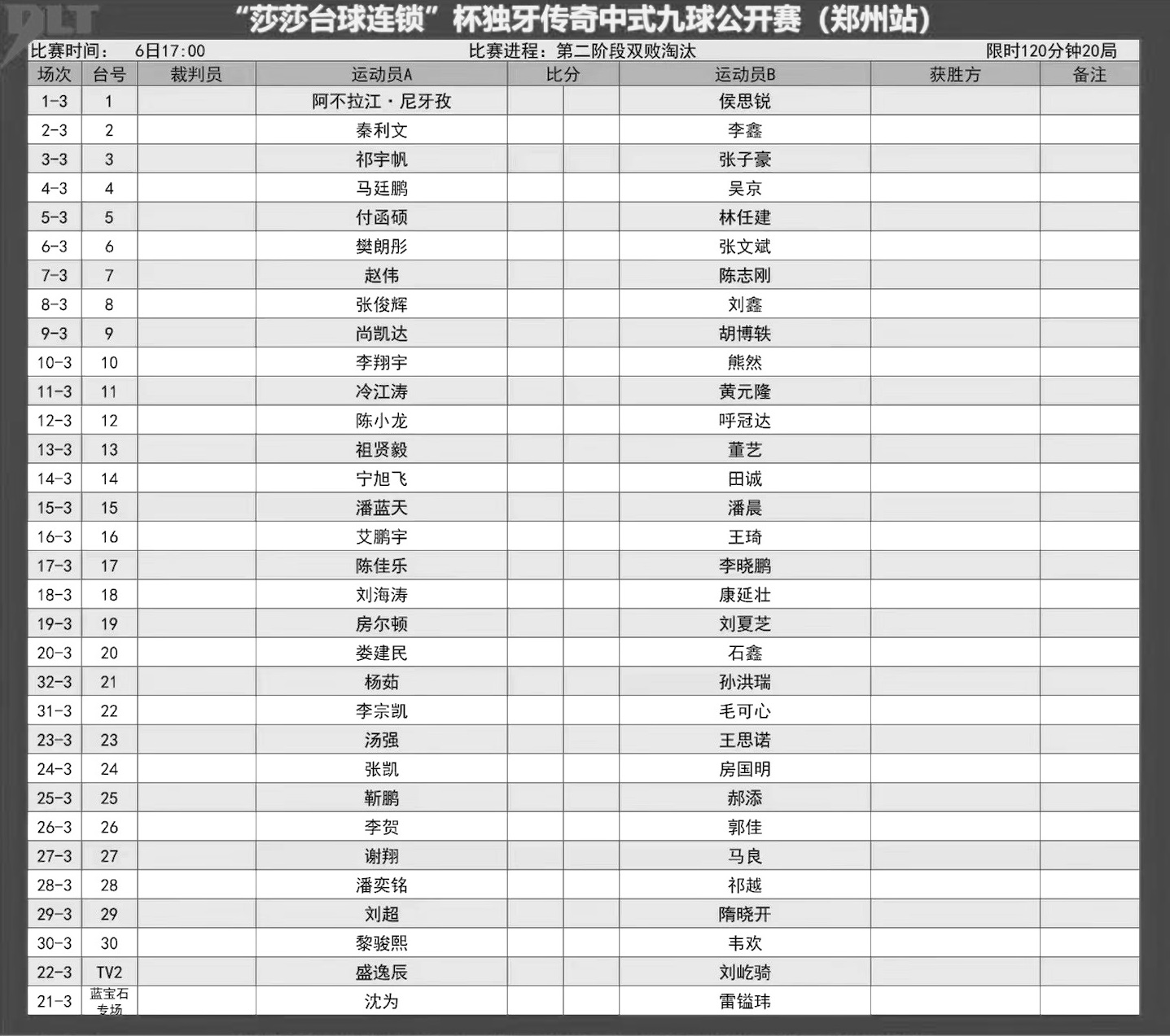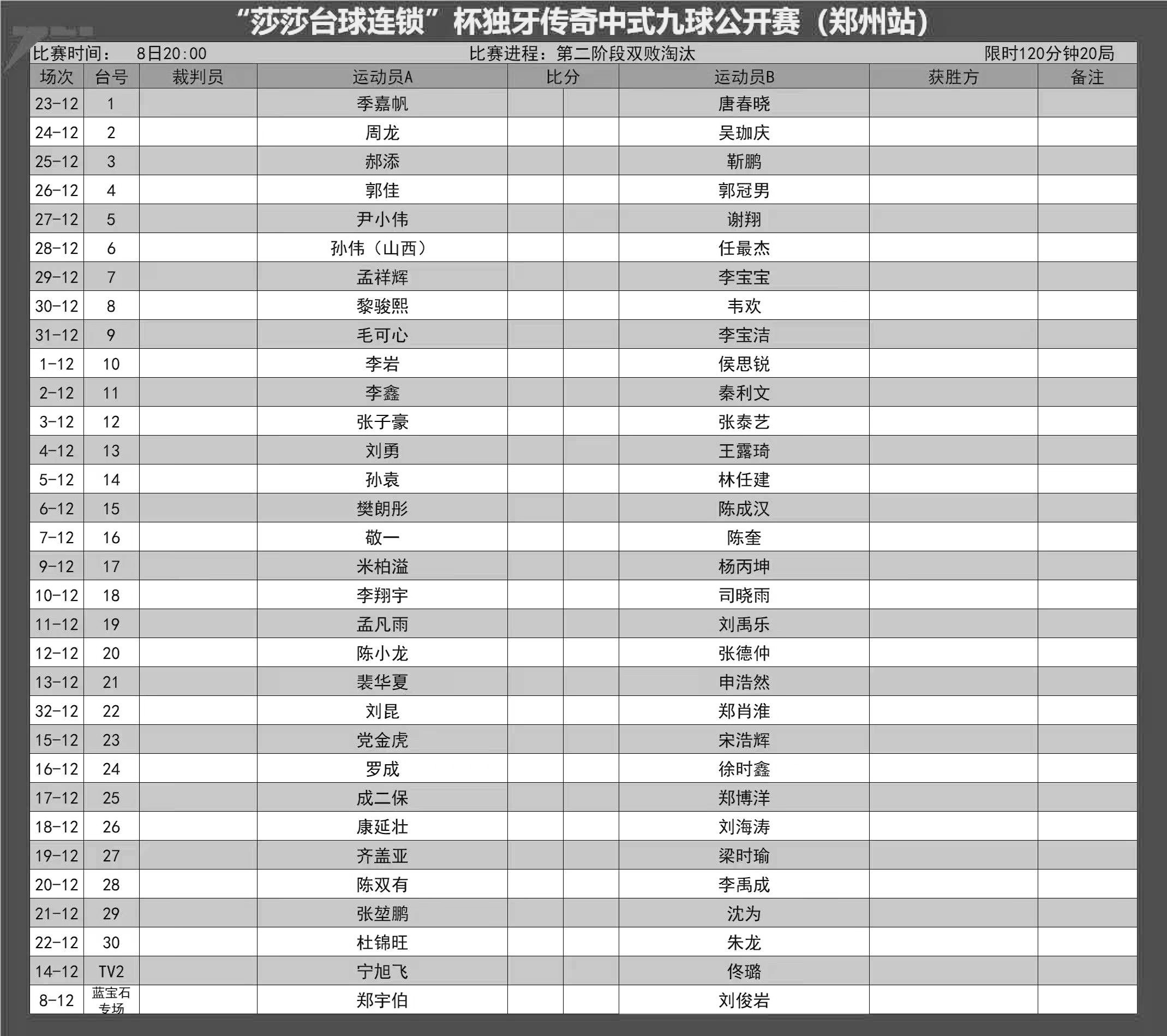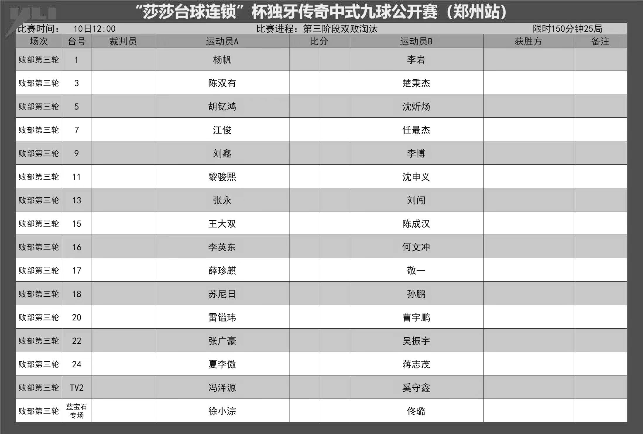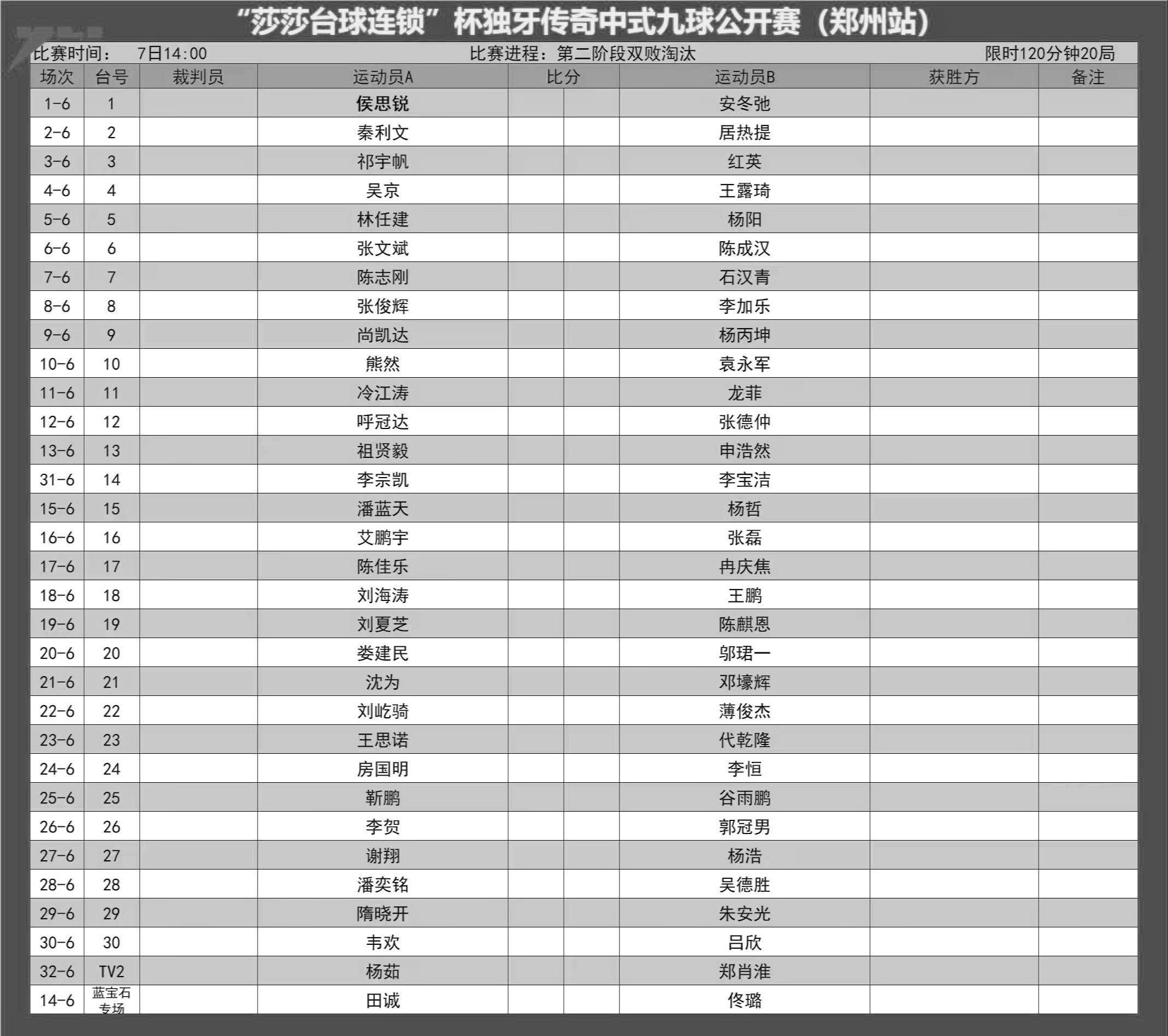 比赛赛程表