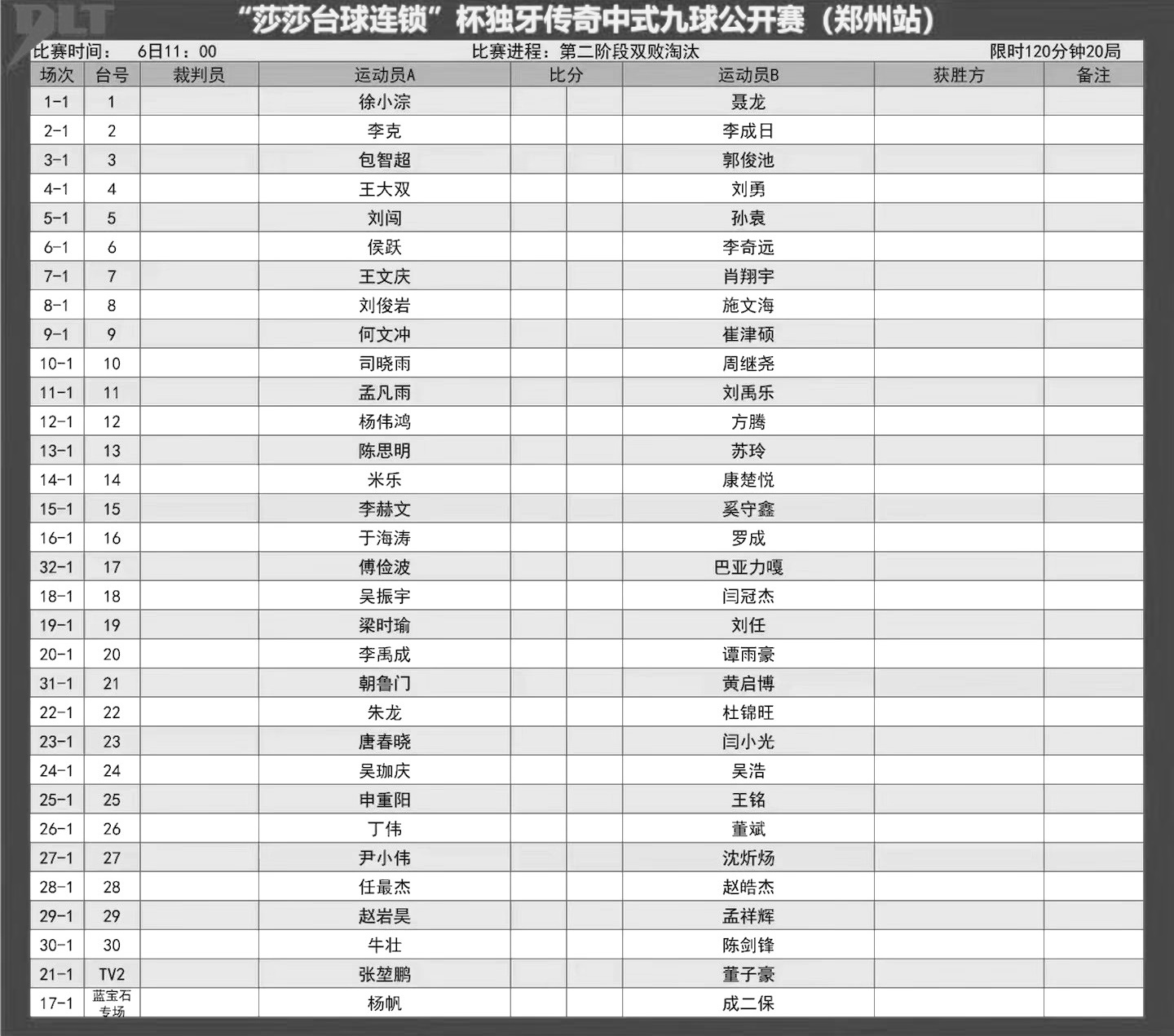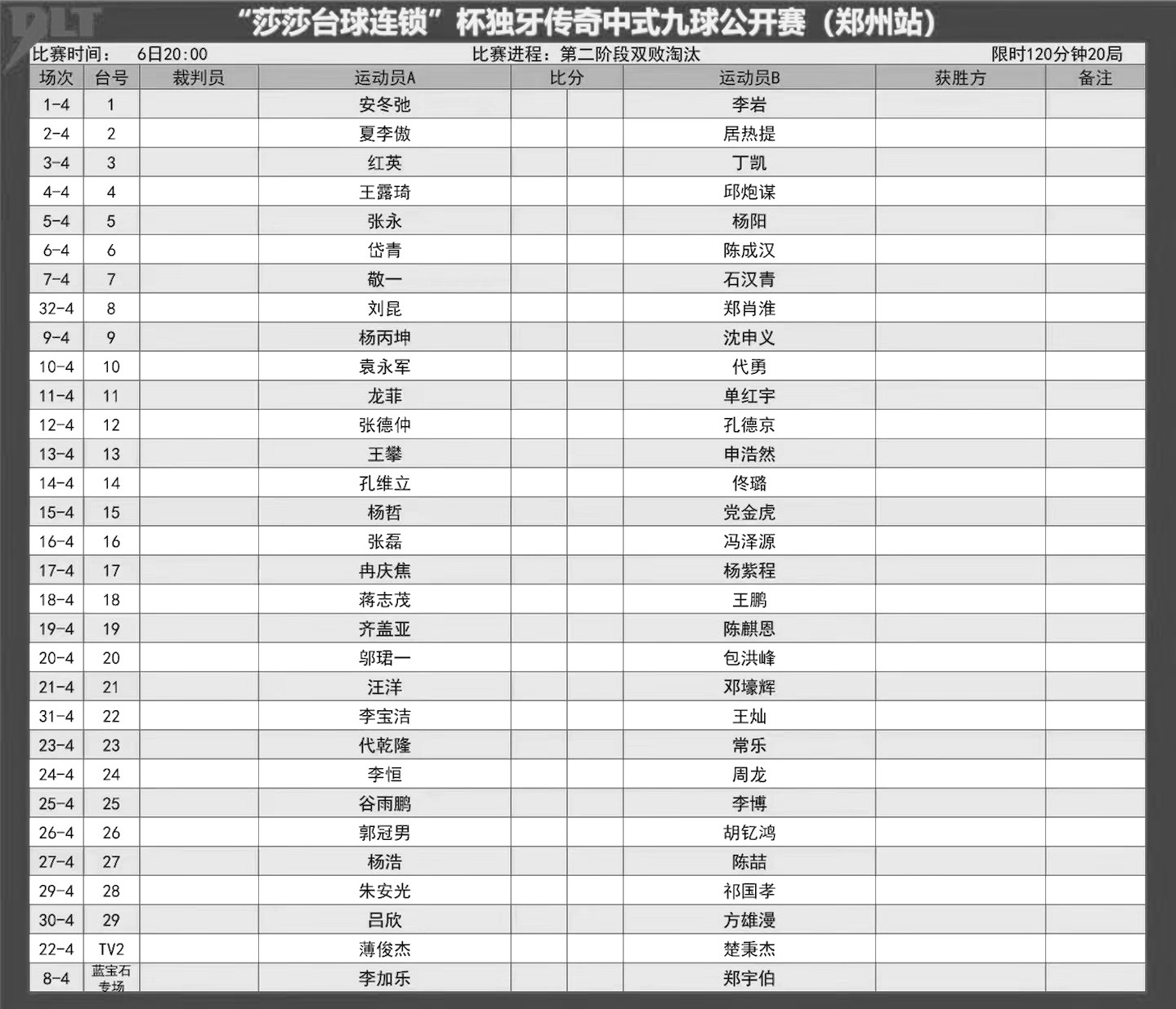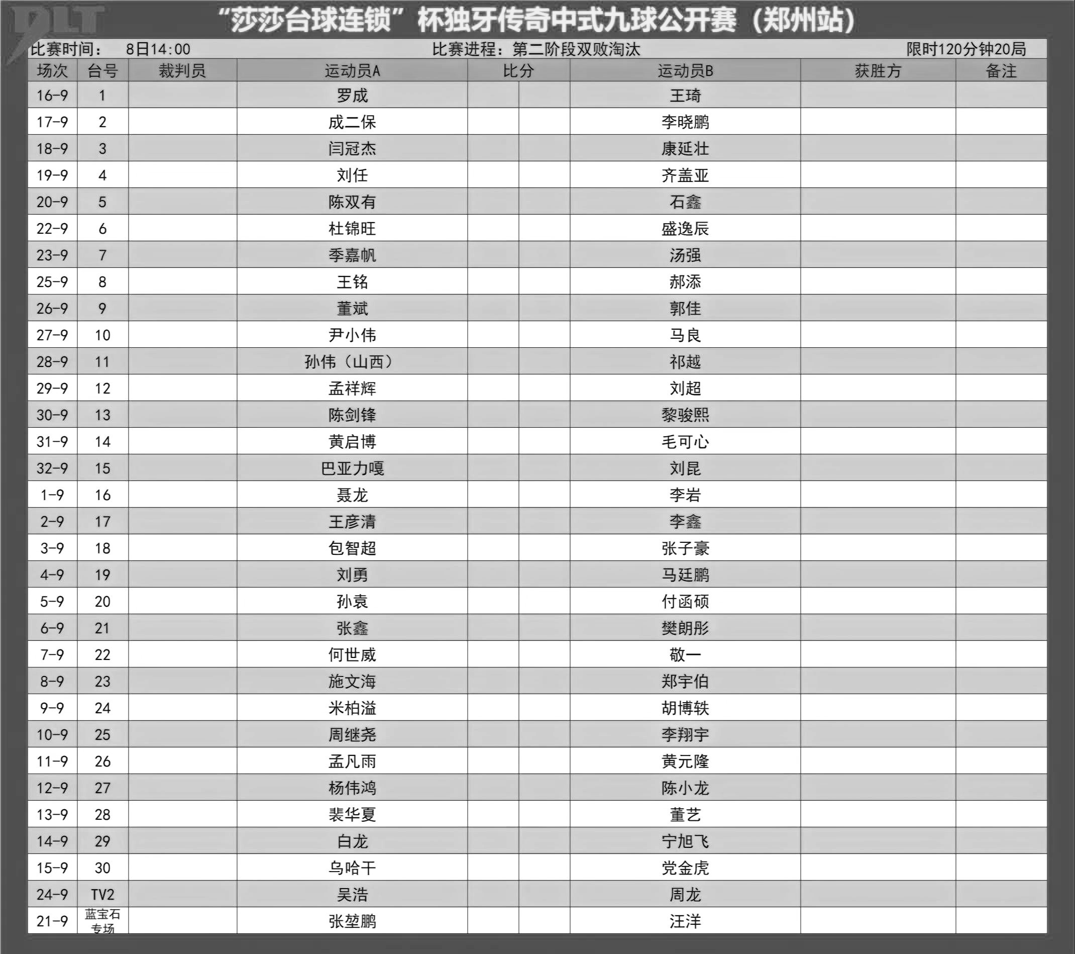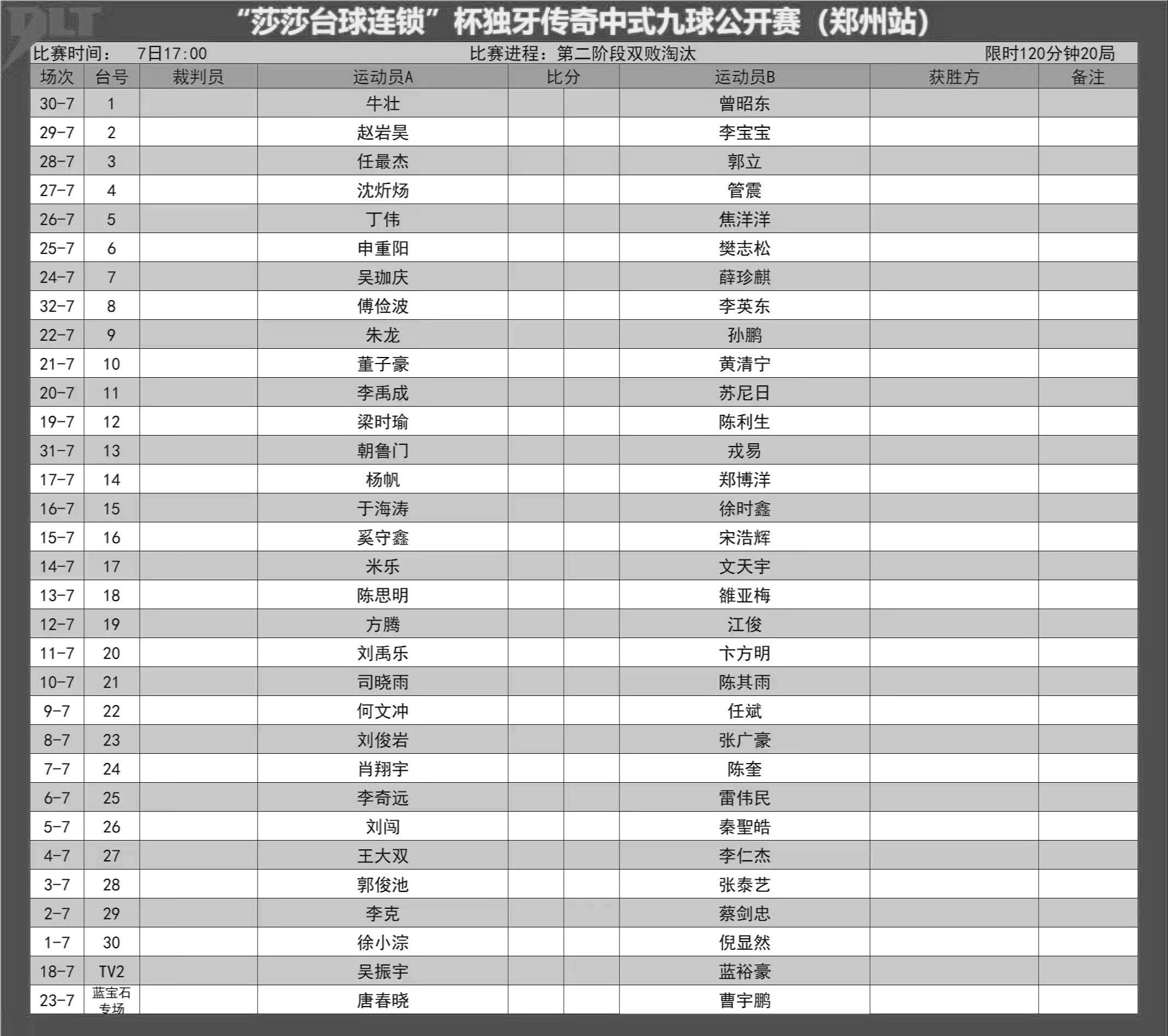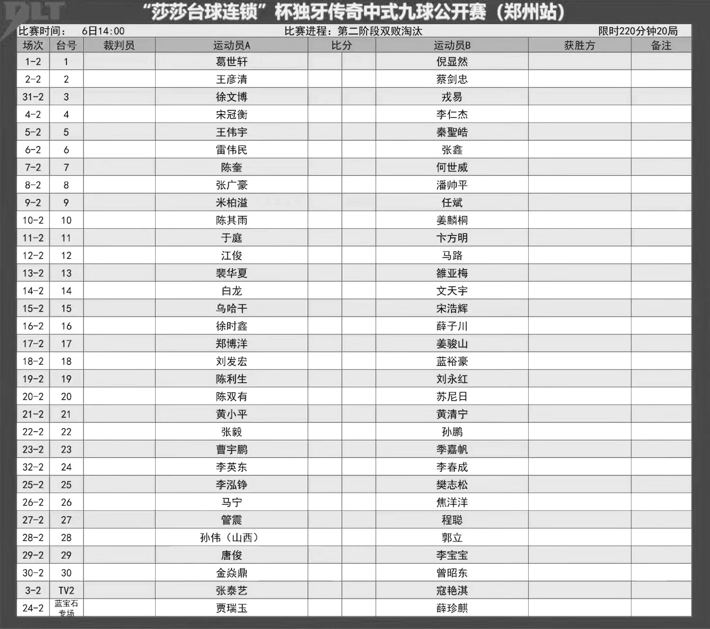 比赛赛程表