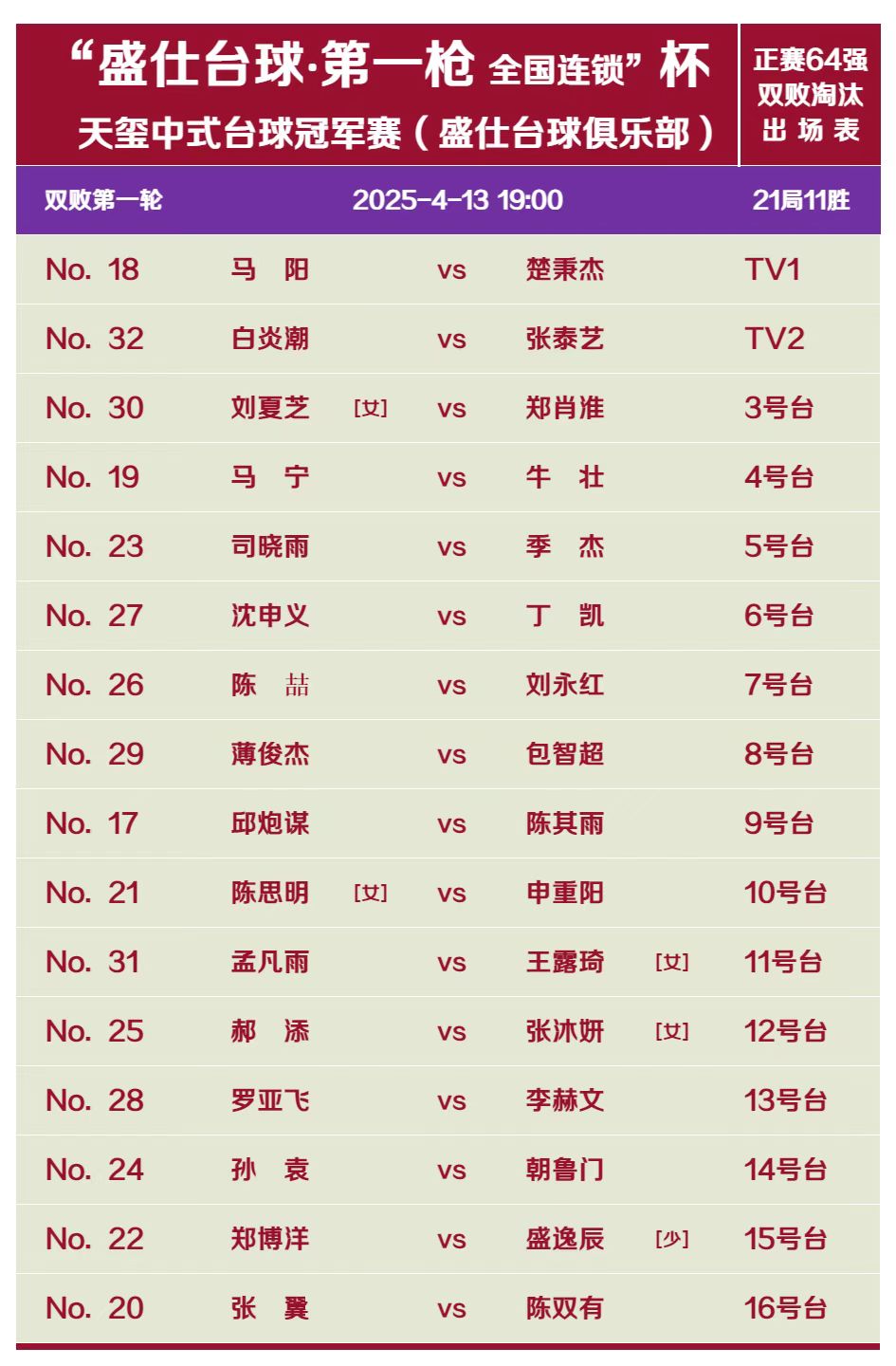 友球记·池袋·校霸杯·武汉大学生第一杆6球追分赛·第一阶段赛程