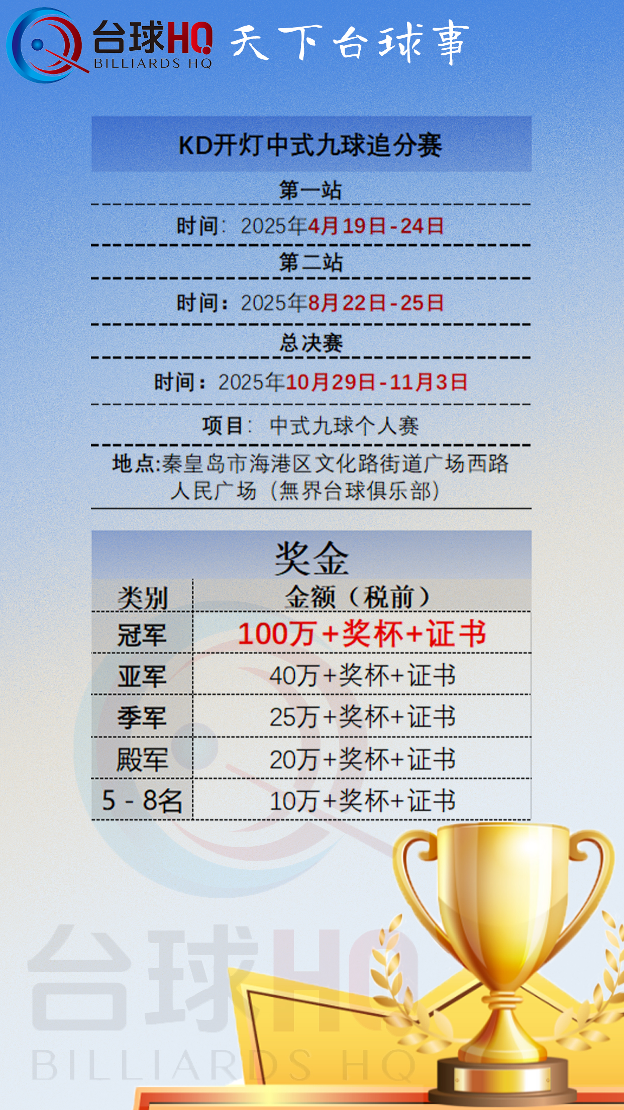 【2025年8月】KD开灯中式九球追分赛·奖金地点