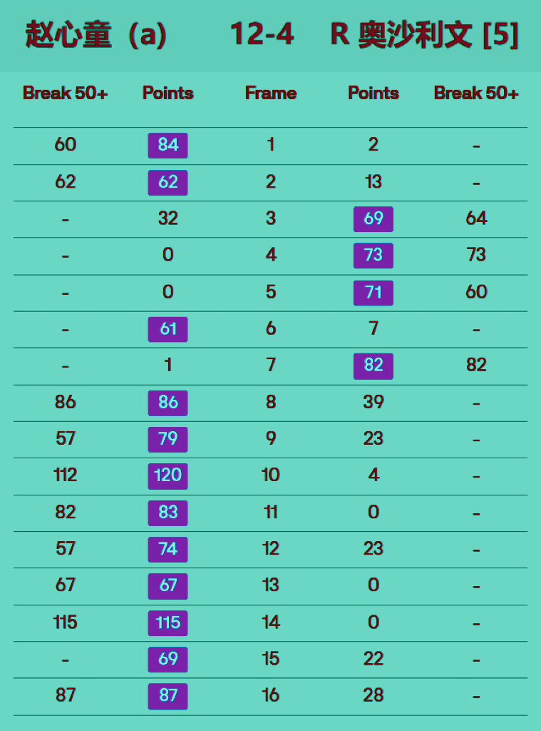 赵心童 (a) 17-7 R 奥沙利文 [5] 详情