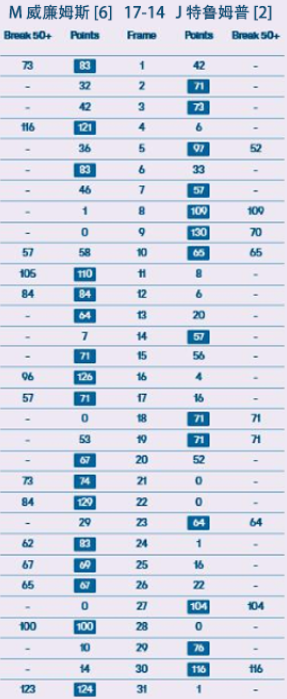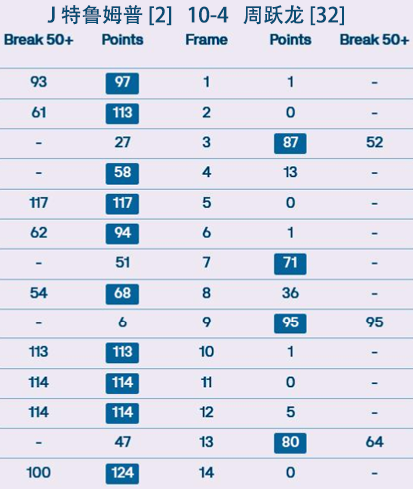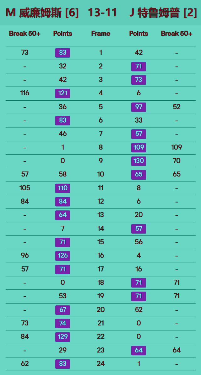 第15局特鲁姆普打出了本赛季第100杆单杆破百