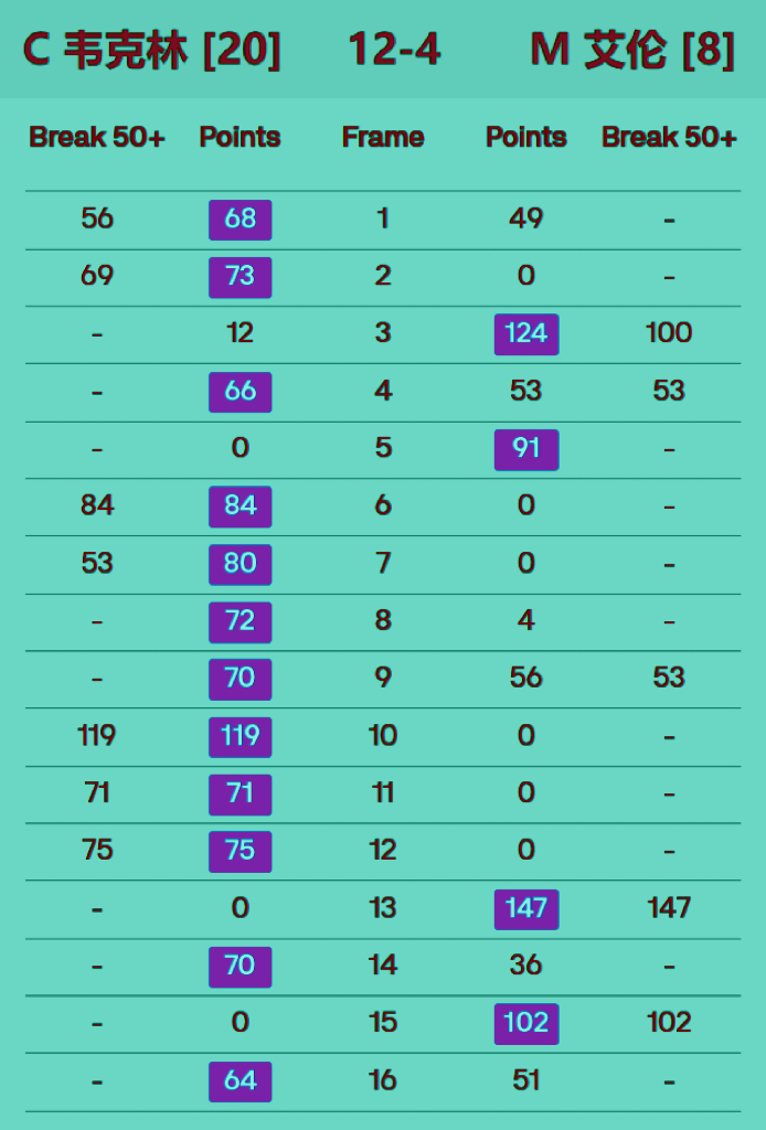 赵心童 (a) 13-5 C 韦克林 [20] 详情
