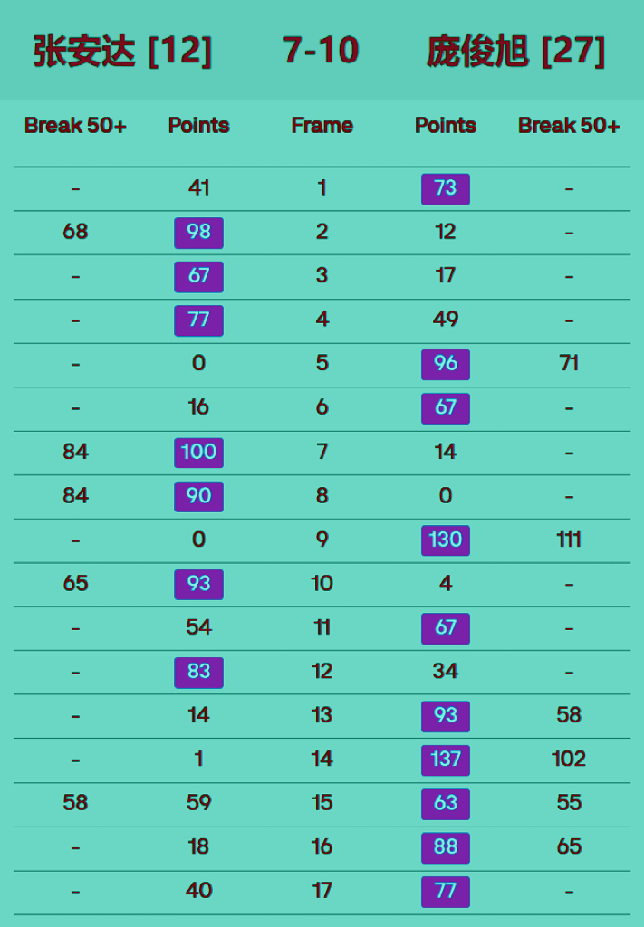 丁俊晖 [10] 10-7 Z 苏瑞特 [72] 详情