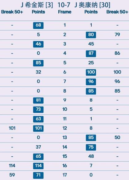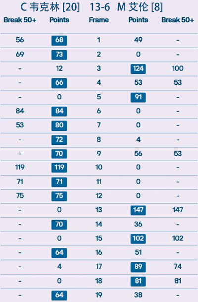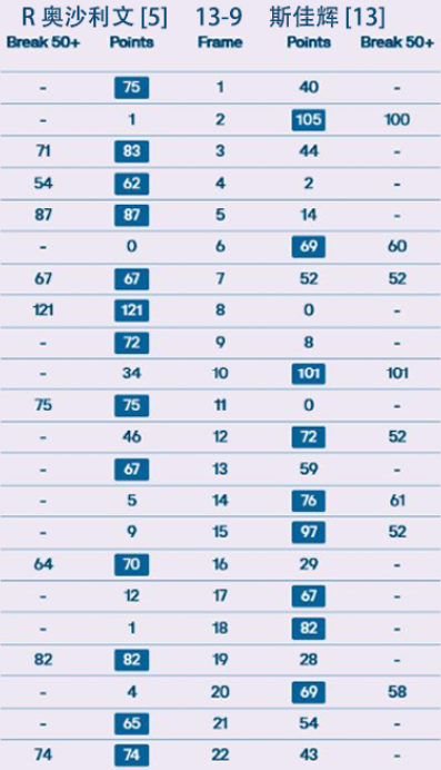R 奥沙利文 [5] 13-9 斯佳辉 [13] 详情