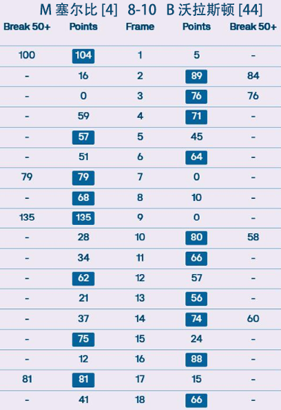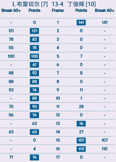 L 布雷切尔 [7] 13-4 丁俊晖 [10] 详情