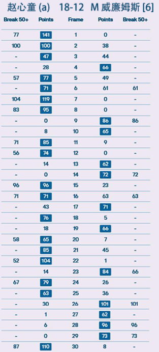 赵心童 (a) 18-12 M 威廉姆斯 [6] 详情