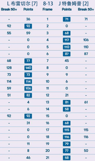 L 布雷切尔 [7] 8-13 J 特鲁姆普 [2] 详情