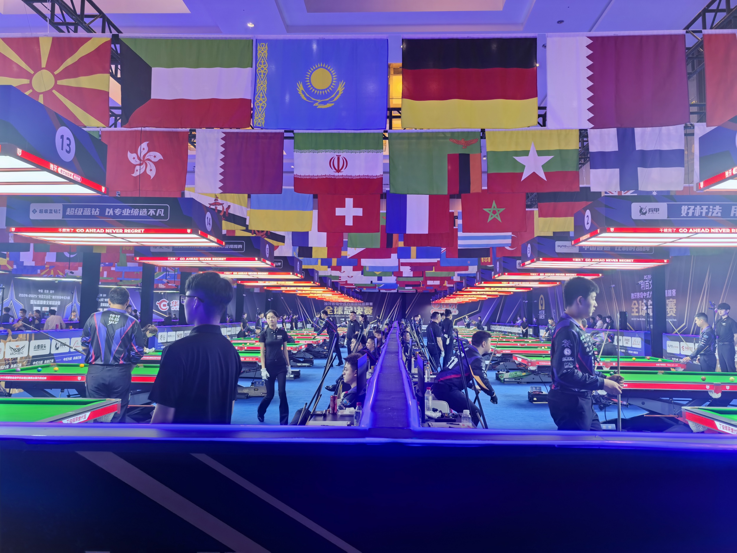 本月,九华山庄的主题和主色调无疑是台球,因为冠军奖高达500万的北京昌平2024-2025“利百文台尼”独牙传奇中式九球国际巡回赛全球总决赛正在这里举行。从进入大门到山庄内各主干道和庭院建筑之间,到处飘扬着各国旗帜,以及知名球员的头像。而在这一切华丽的背后,又有谁知道其中的艰辛与曲折?