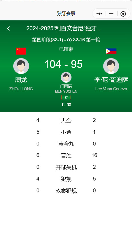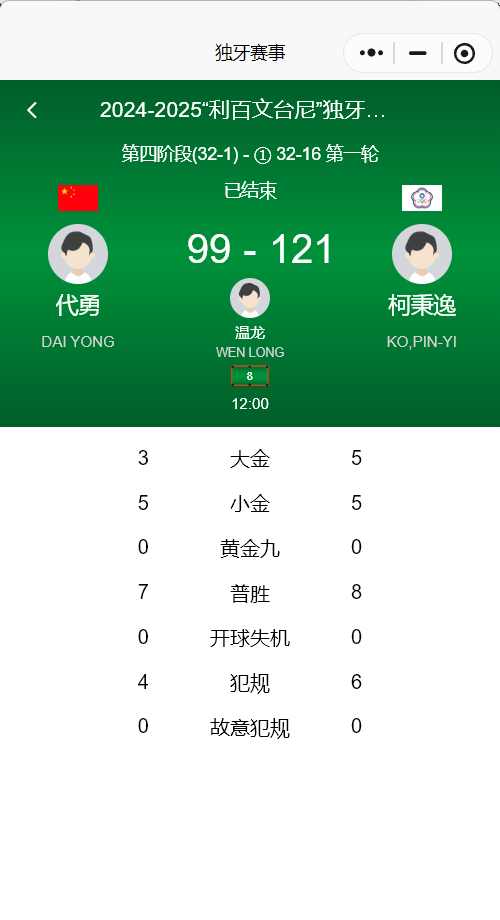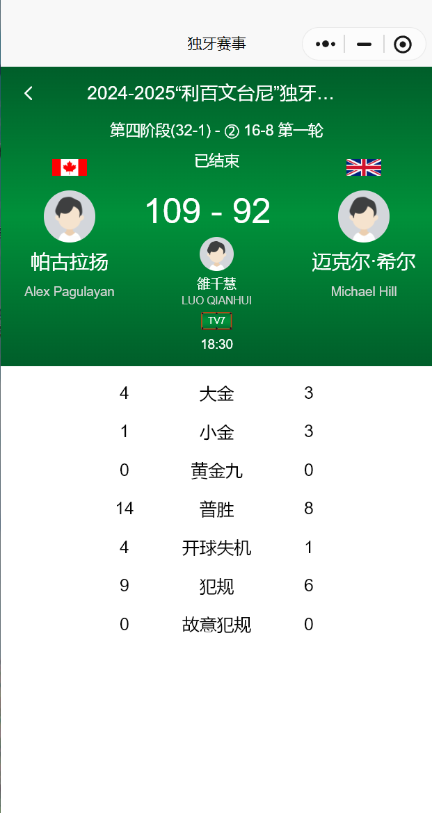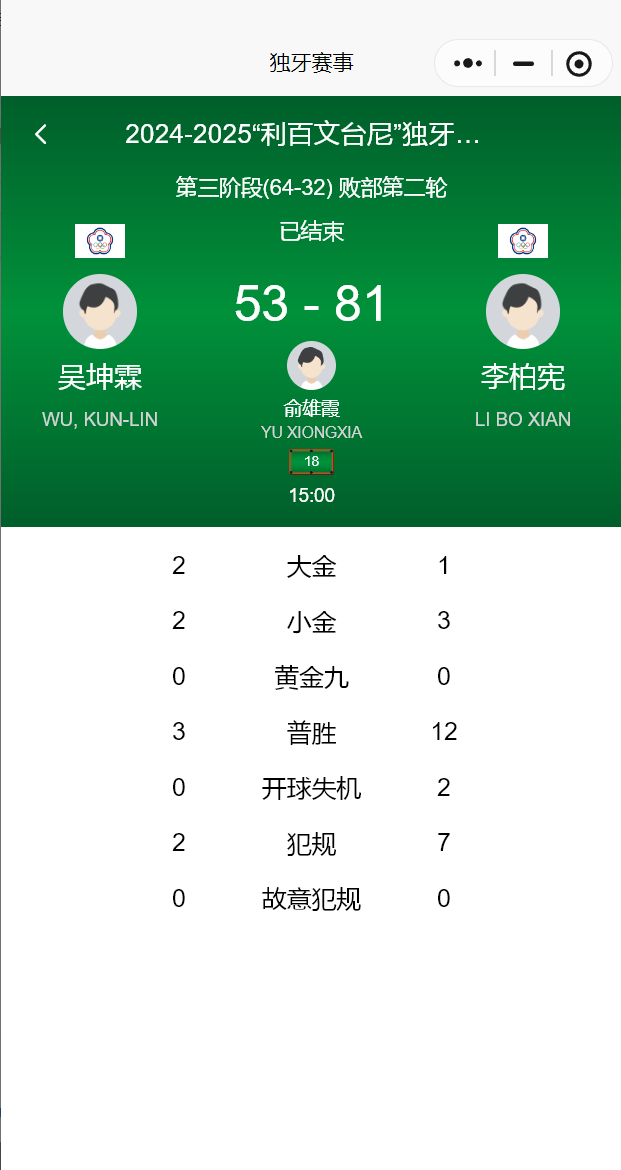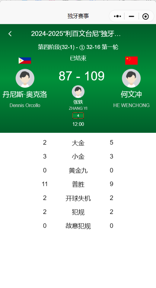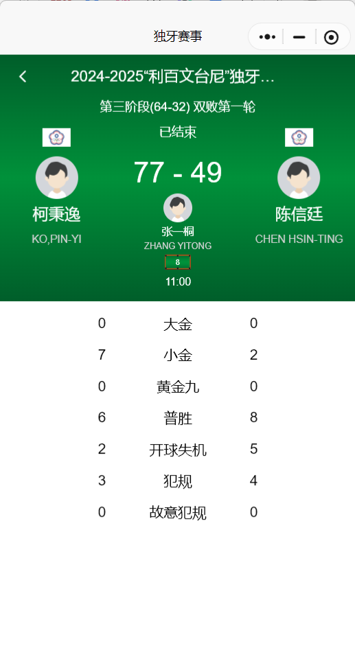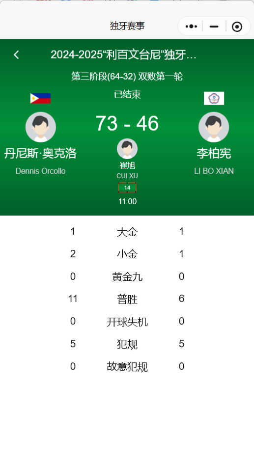 丹尼斯·奥克洛 73-46 李柏宪 详情