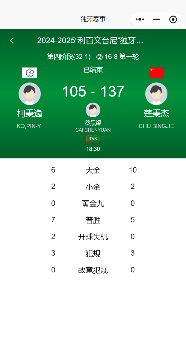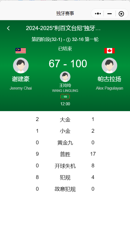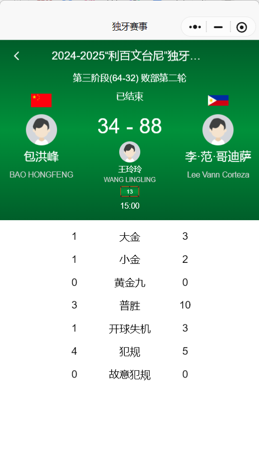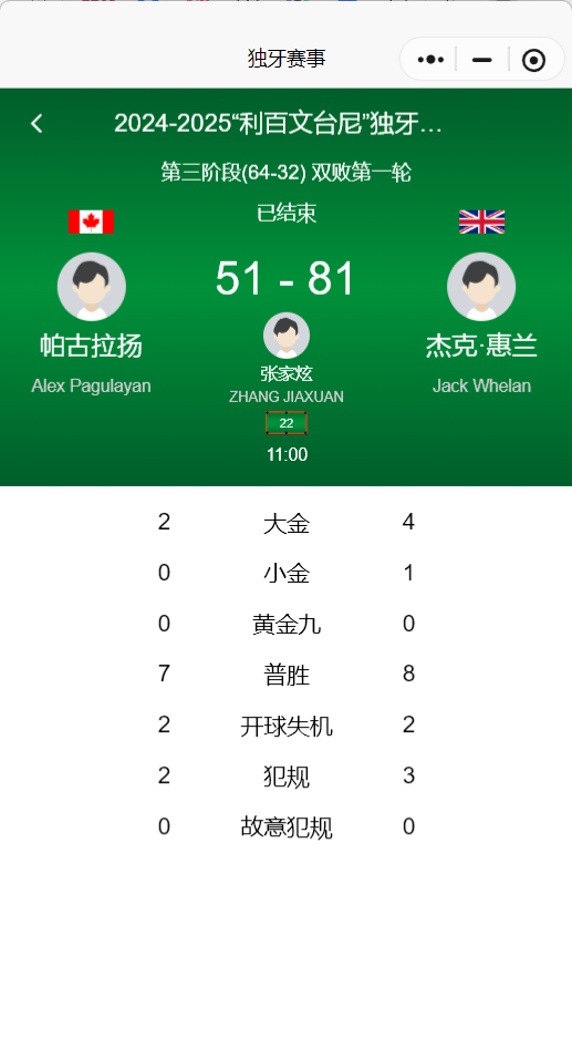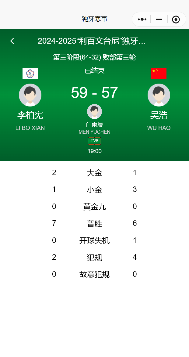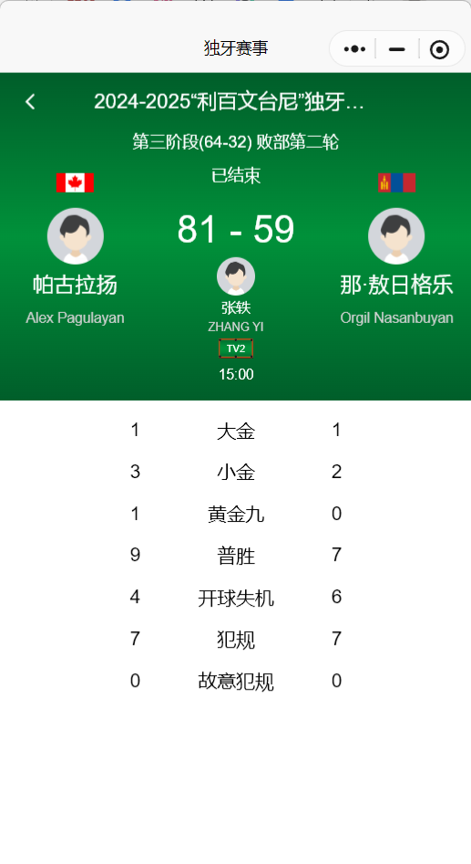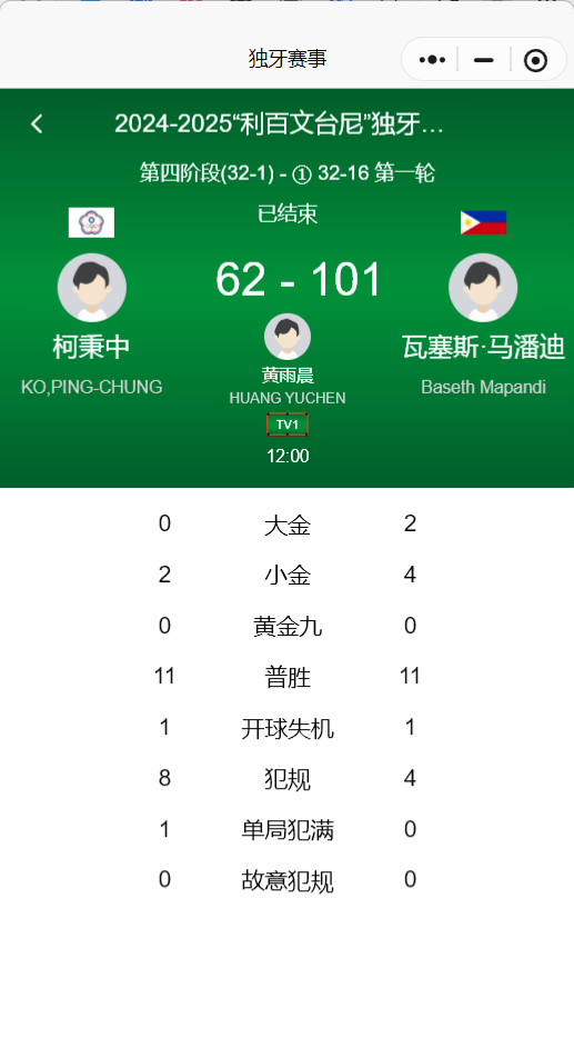 丹尼斯·奥克洛 73-46 李柏宪 详情