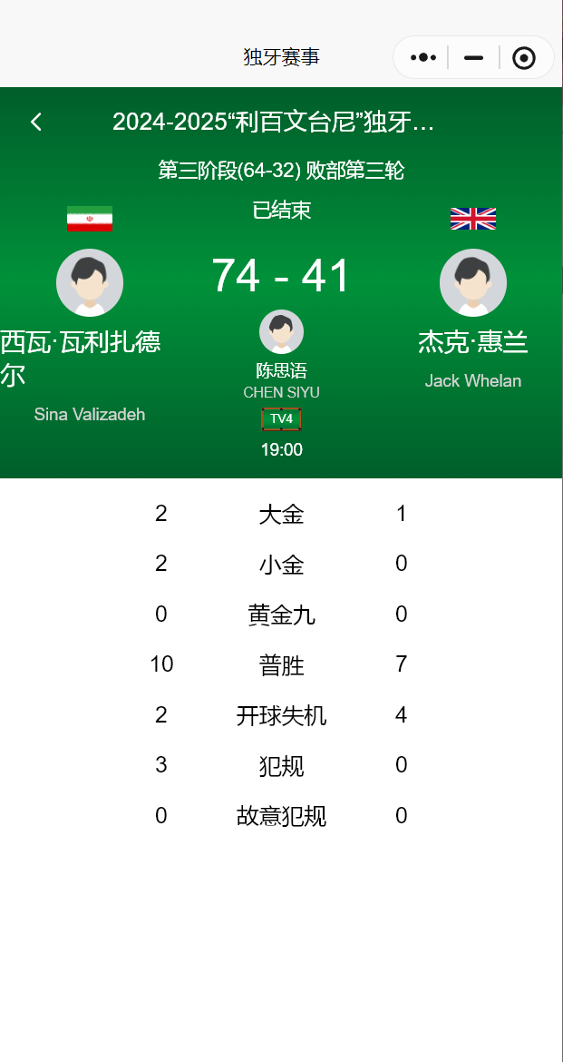 西瓦·瓦利扎德尔 74-41 杰克·惠兰 详情