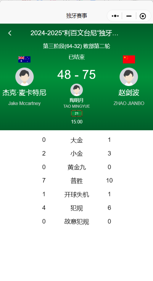 杰克·麦卡特尼 48-75 赵剑波 详情