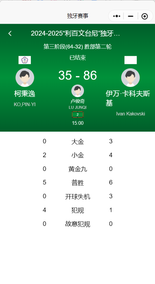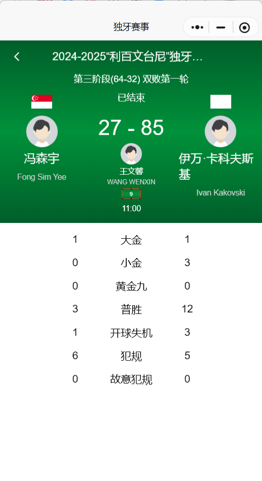 冯森宇 27-85 伊万·卡科夫斯基 详情