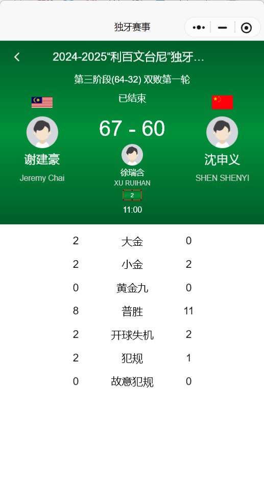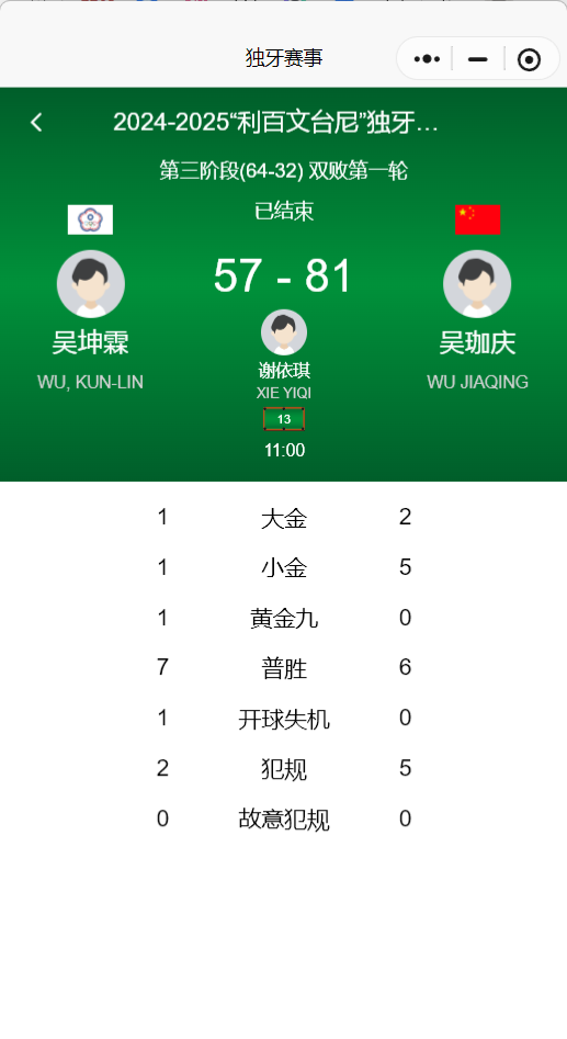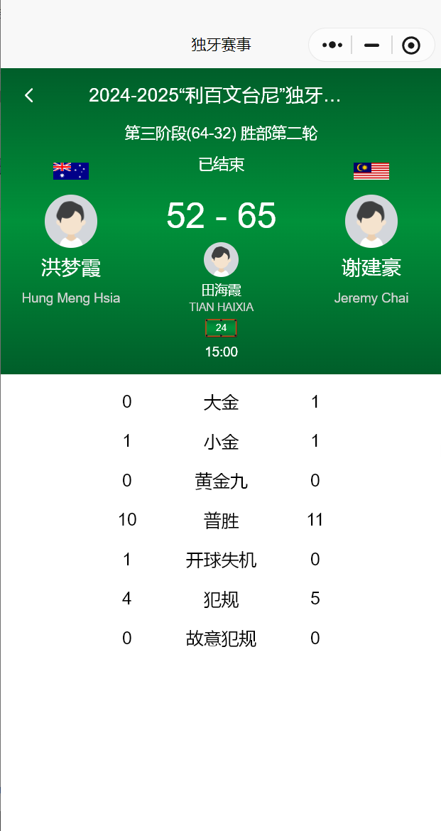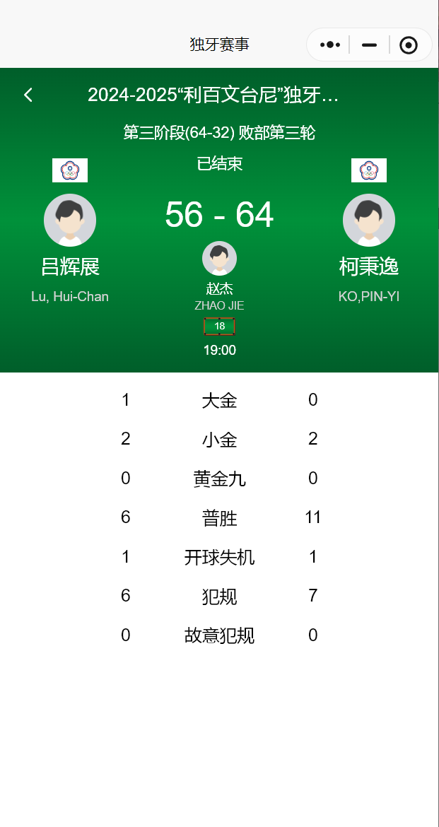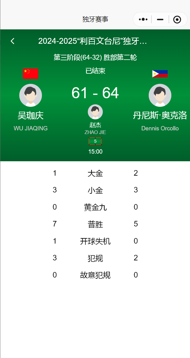 吴珈庆 61-64 丹尼斯·奥克洛 详情