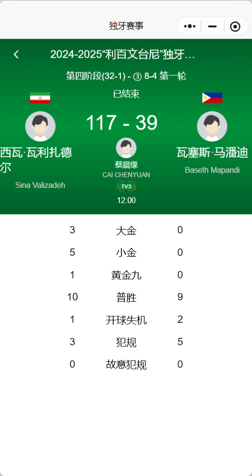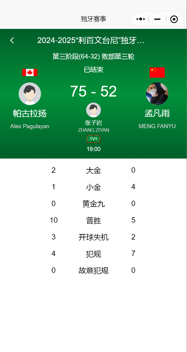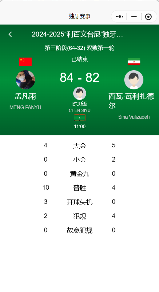 孟凡雨 84-82 西瓦·瓦利扎德尔 详情