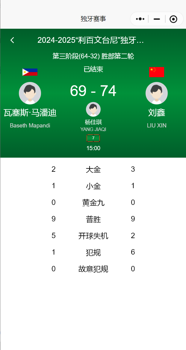 瓦塞斯·马潘迪 69-74 刘鑫 详情