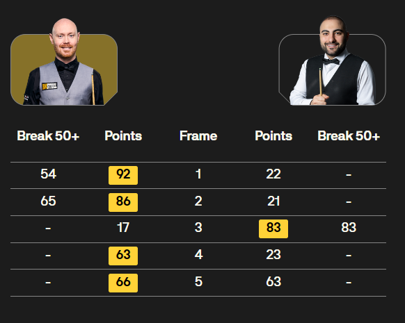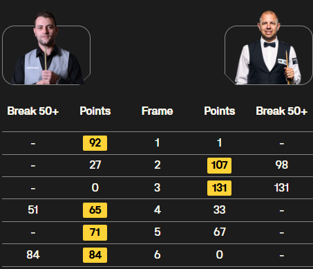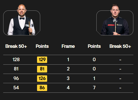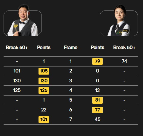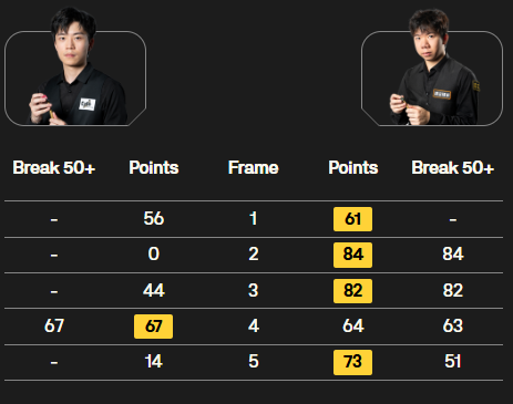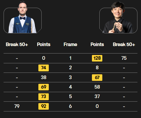 傅家俊0-3落后逆转。第4局的140分是目前单杆最高分。