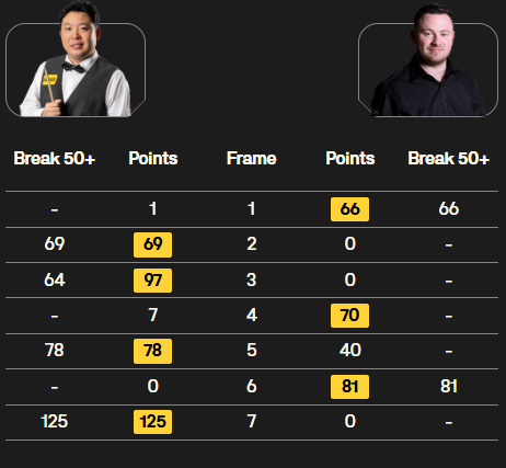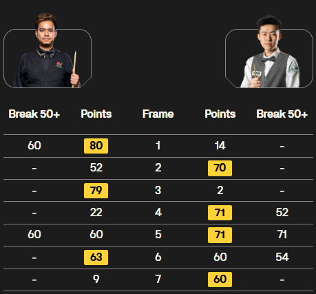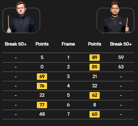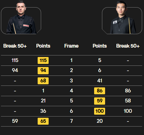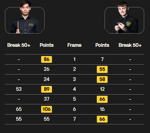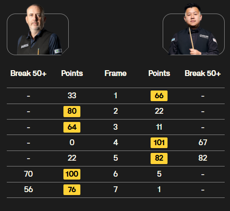 S 宾汉姆 [21] 1-4 赵心童 详情