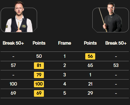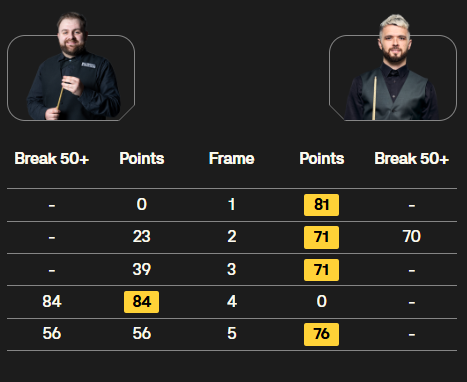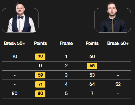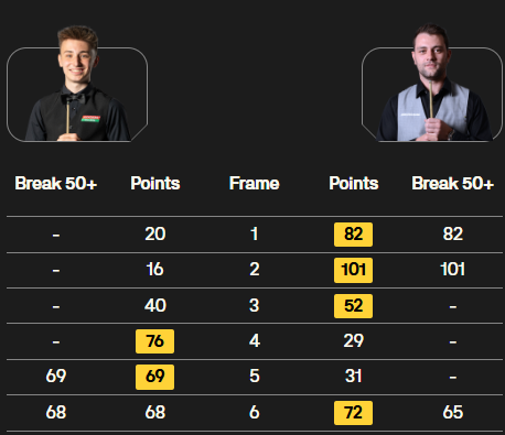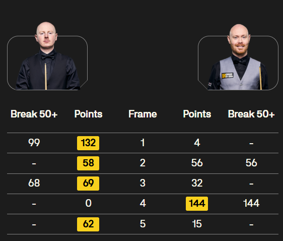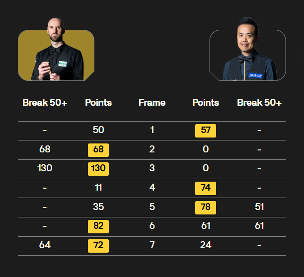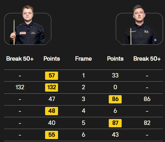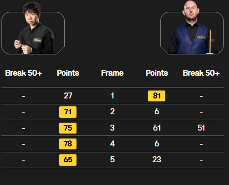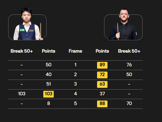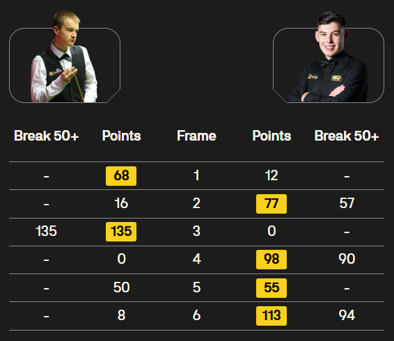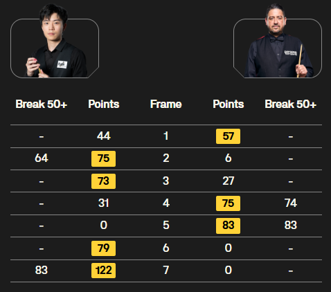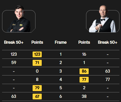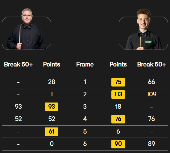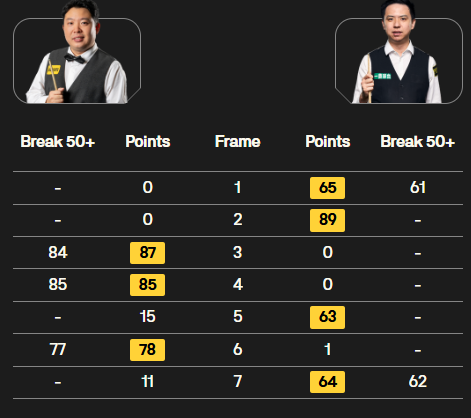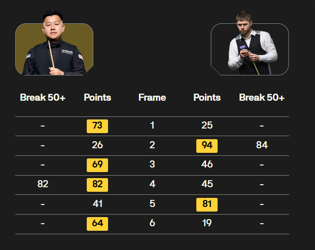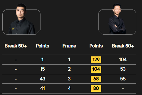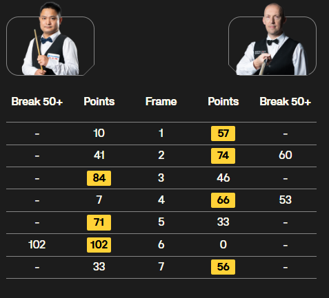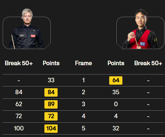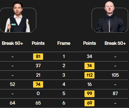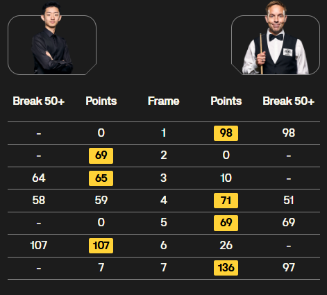 J 希金斯 [6] 4-2 赵心童 [2] 详情