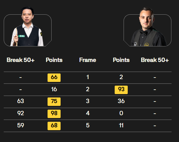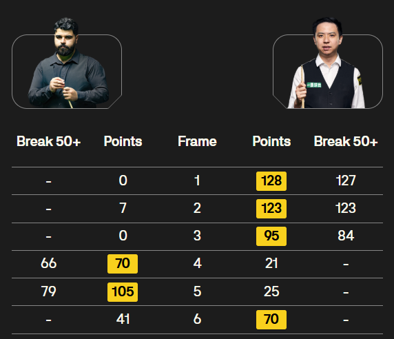 A 赫吉尔 (a) 3-4 赵心童 [2] 详情