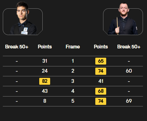 A 戴维斯 (a) 0-4 N 罗伯逊 [8] 详情