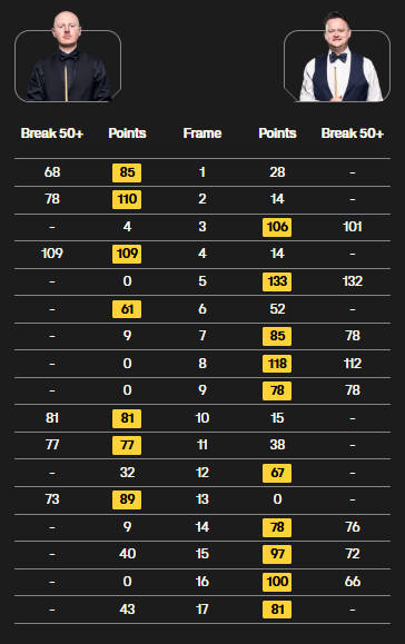 S 墨菲 [13] 4-1 N 罗伯逊 [8] 详情