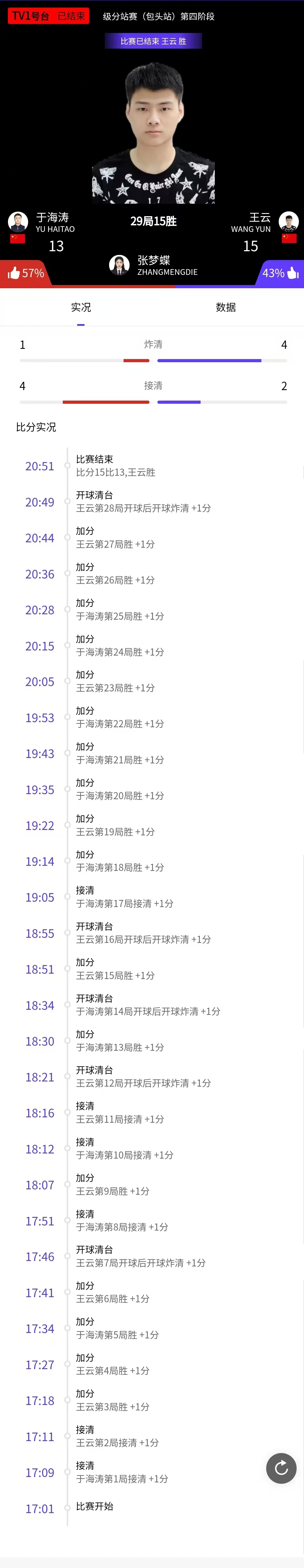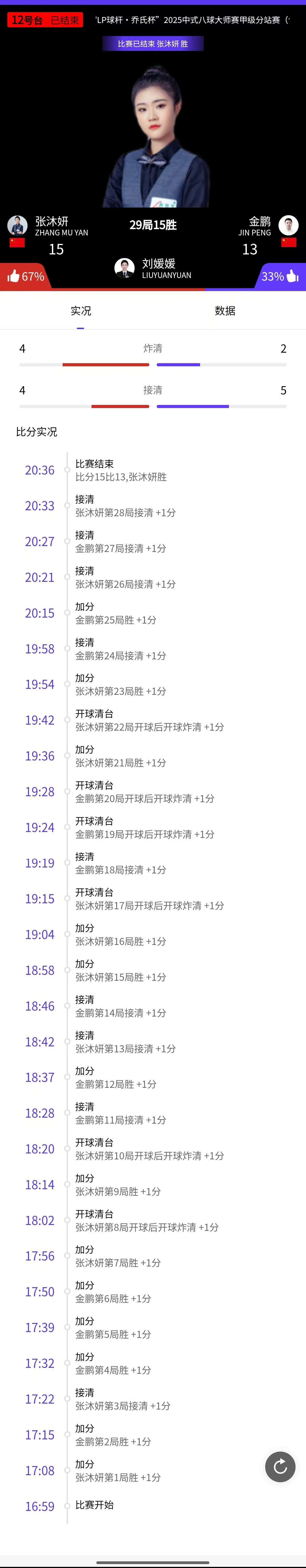 张沐妍 15-13 金鹏 详情