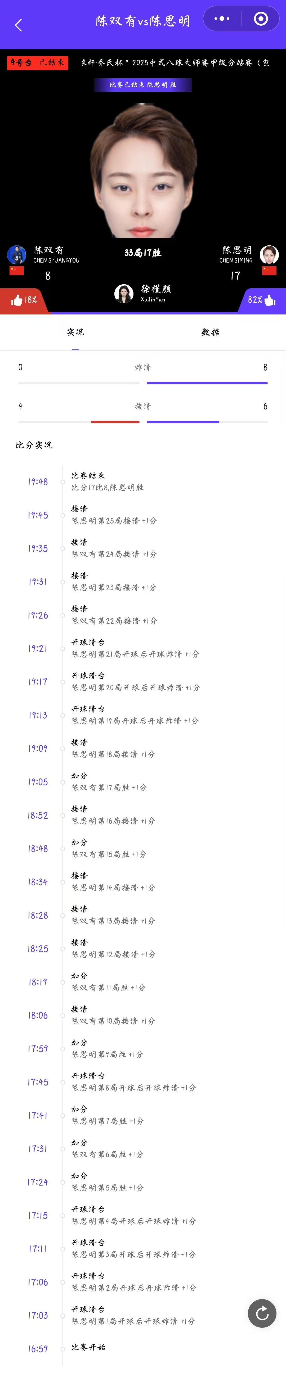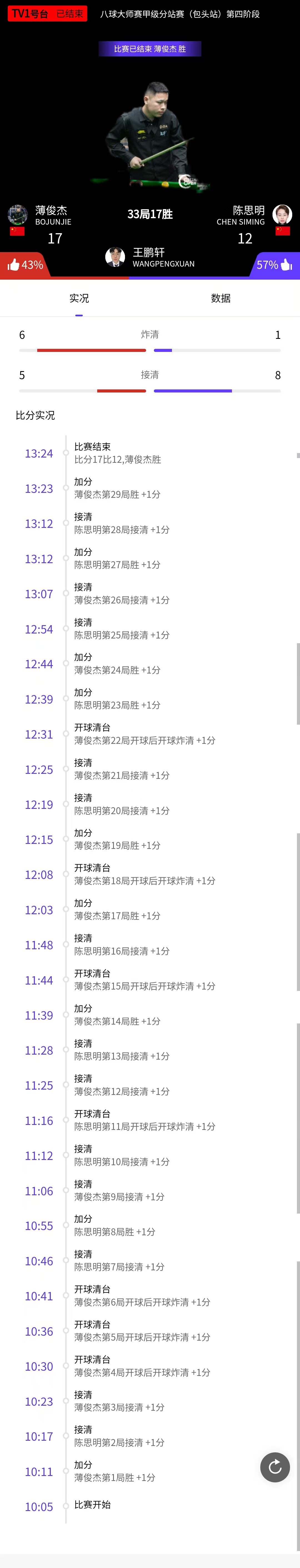 薄俊杰 17-12 陈思明 详情