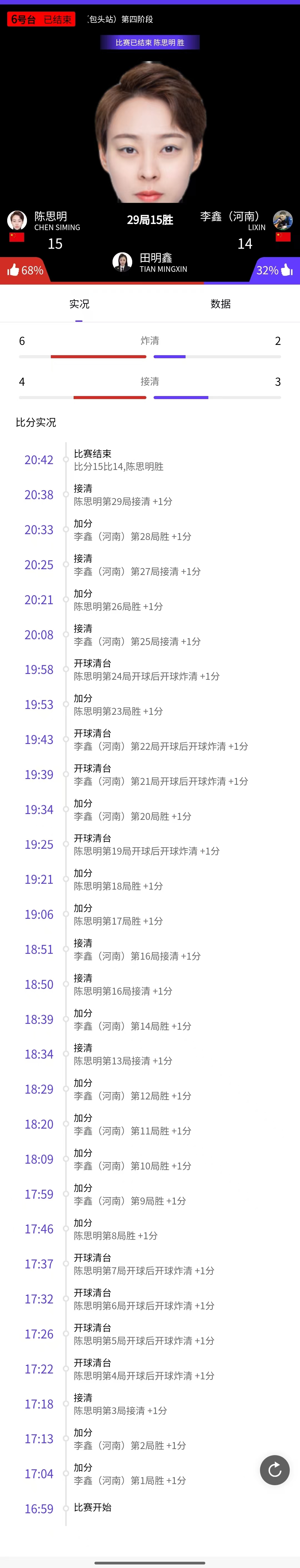 陈思明 15-14 李鑫 详情