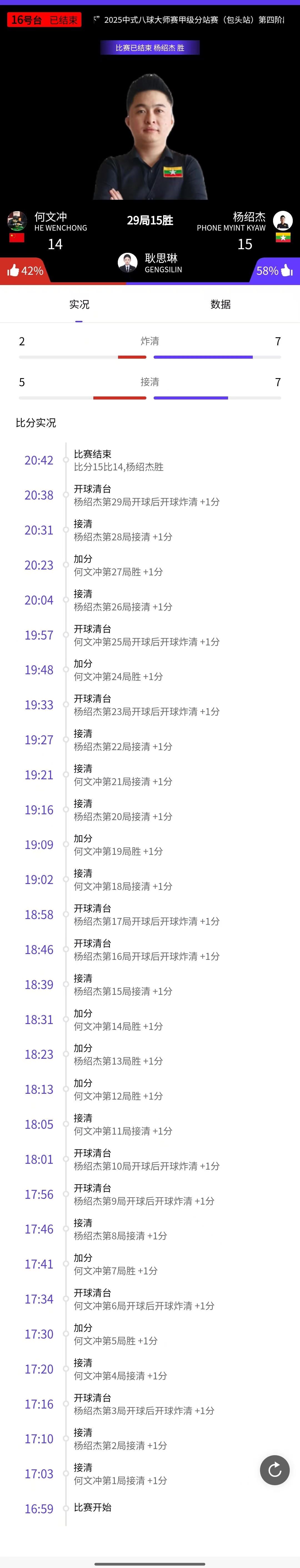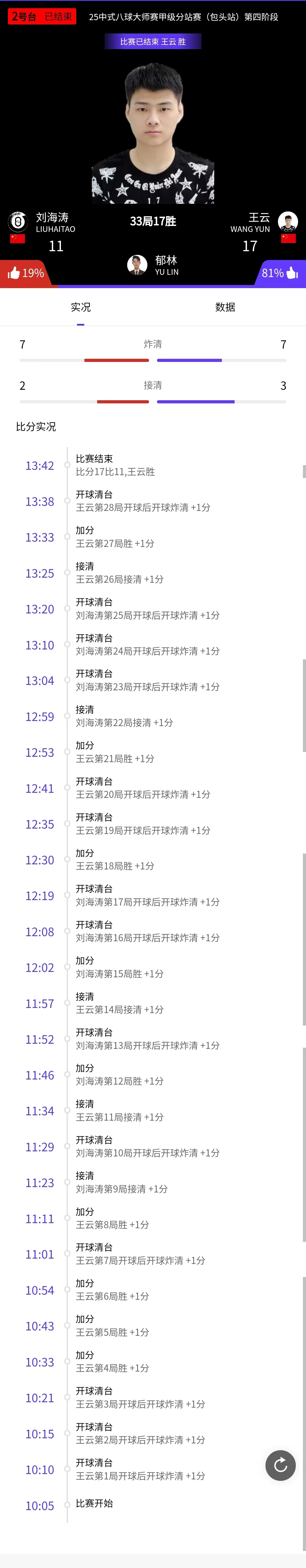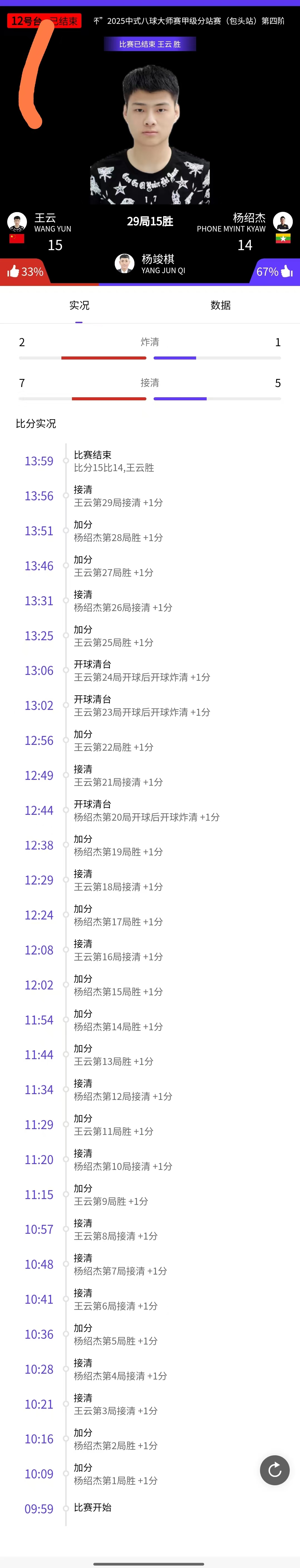 王云 15-14 杨绍杰 详情