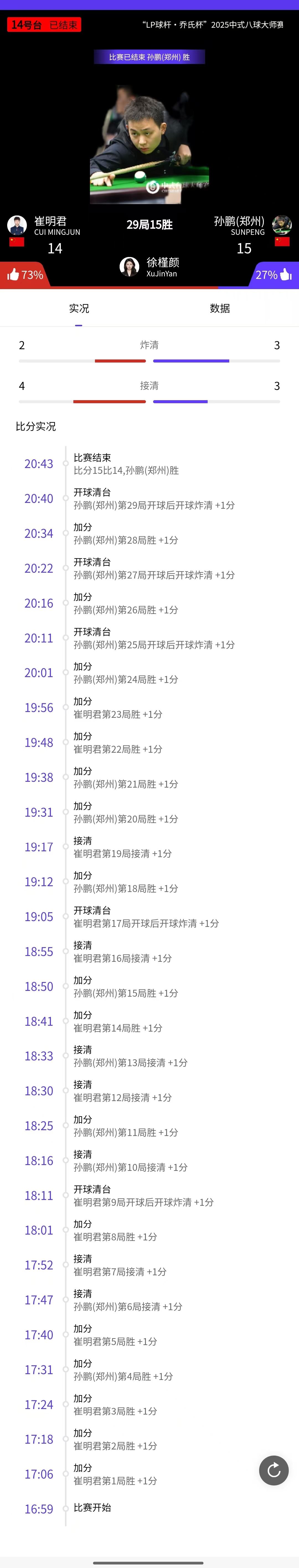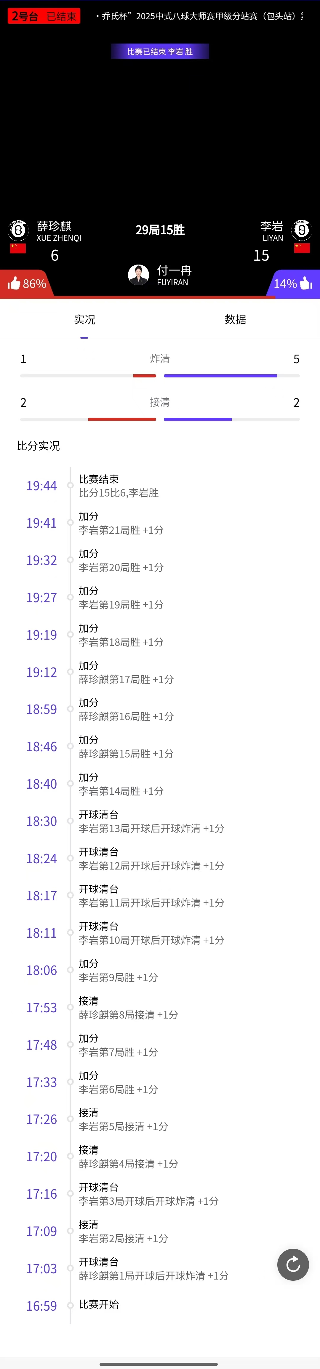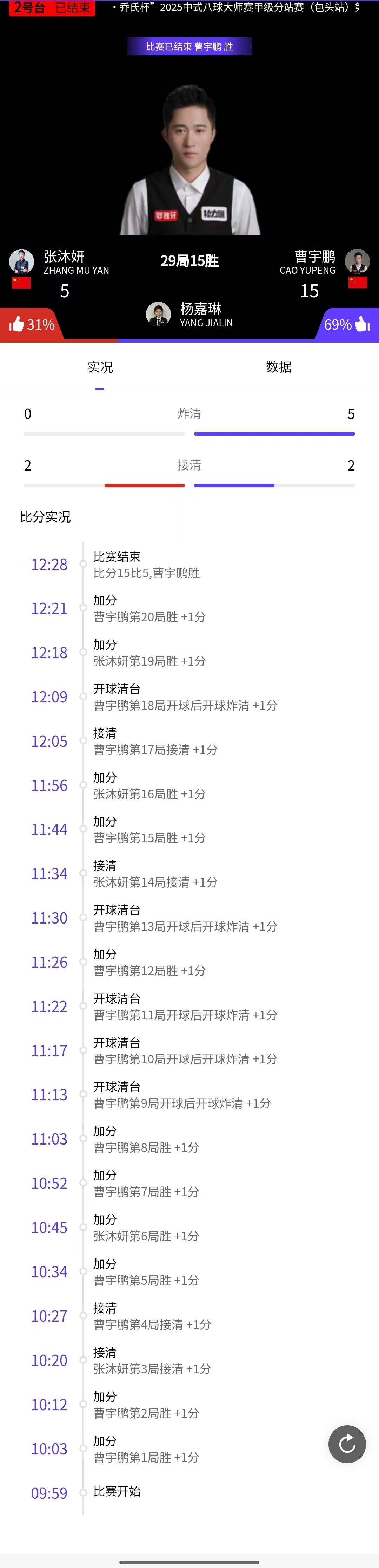 王云 15-14 杨绍杰 详情