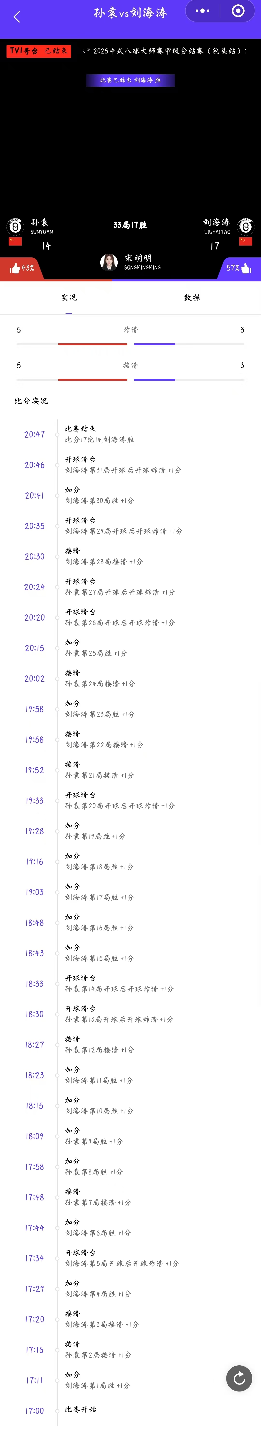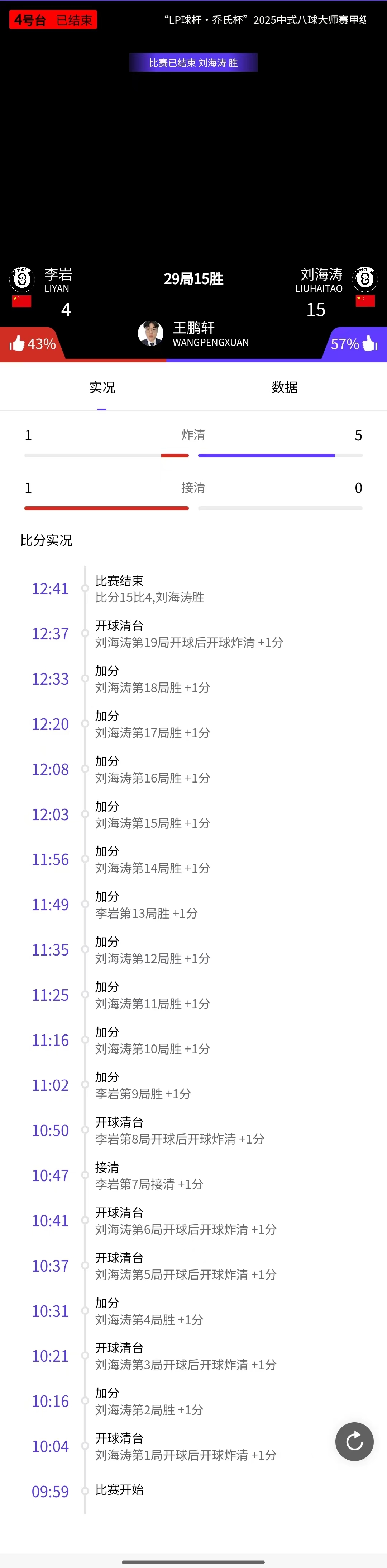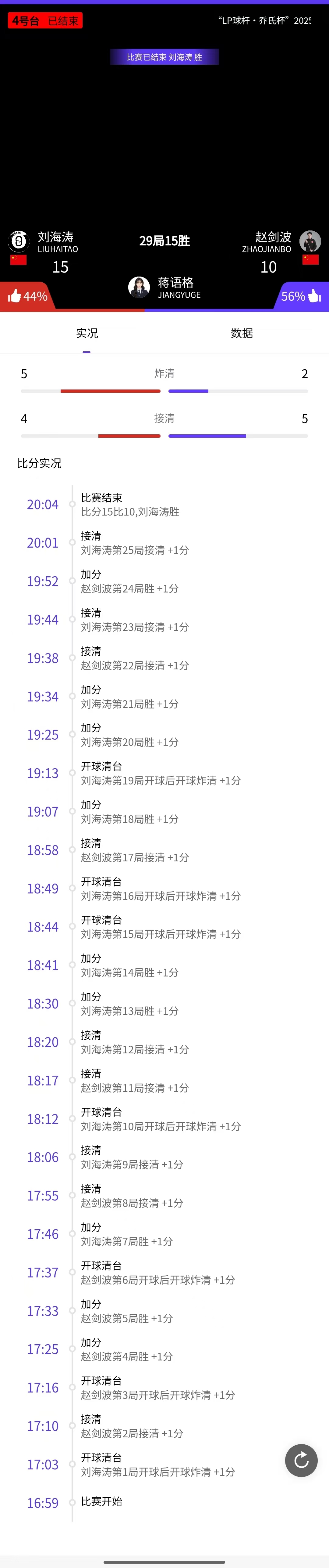 刘海涛 15-10 赵剑波 详情